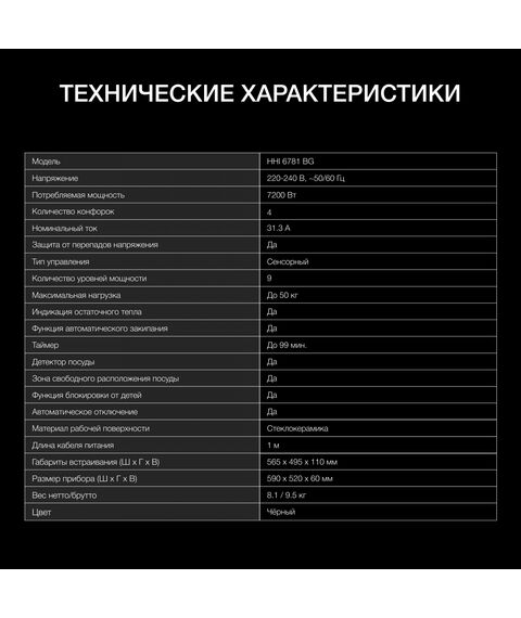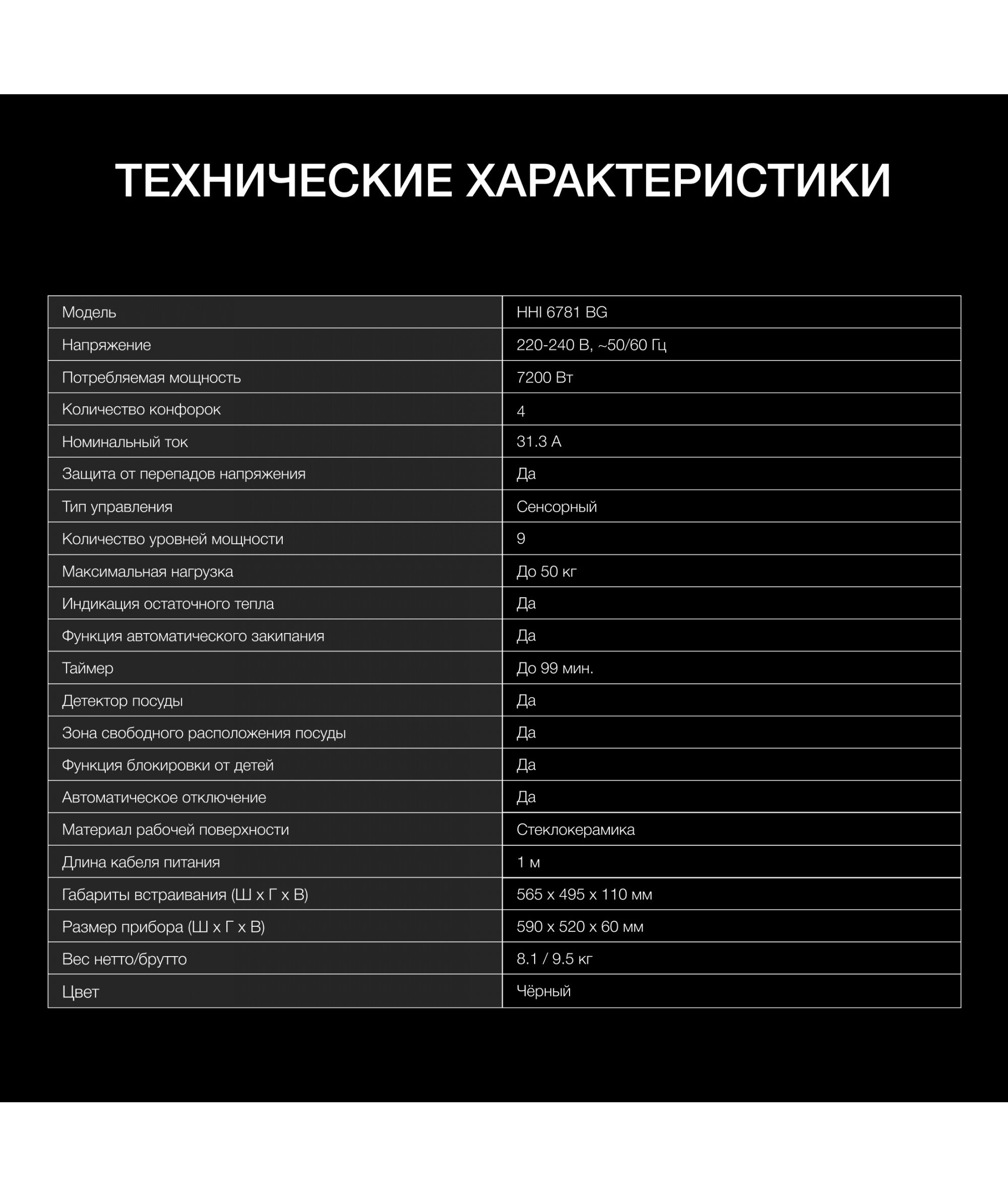 Индукционная варочная поверхность Hyundai HHI 6781 BG черный