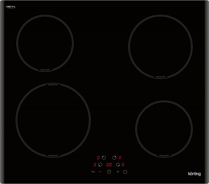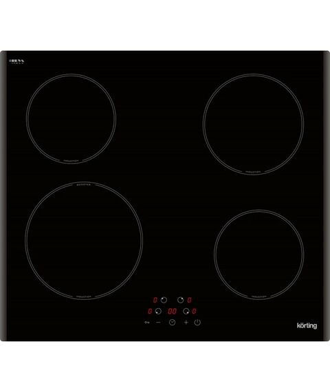 - Индикация остаточного тепла. Световой индикатор у варочных поверхностях Körting горит, пока температура конфорки не понизится до 60°С. Кроме безопасности использования, по световому индикатору можно понять, достаточно ли остыла варка для последующей чистки или нет