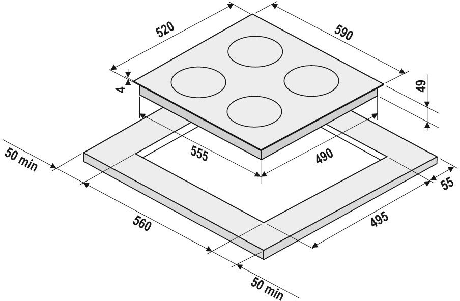 | Размер (левой ближней конфорки) | 140/230 мм |