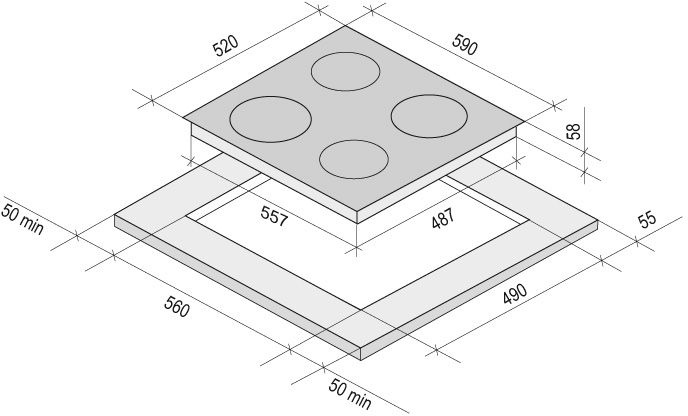 | Мощность (левой ближней конфорки) | 1.8/2.2 кВт |