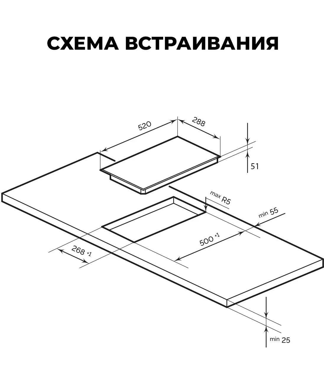 | Размеры для встраивания | 268x500мм |