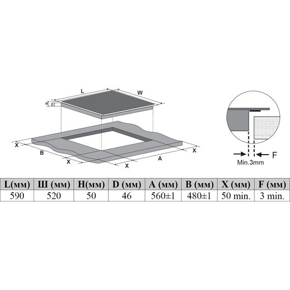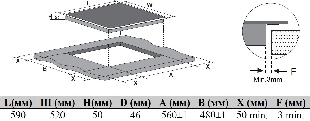 | Размеры для встраивания | 560x480мм |