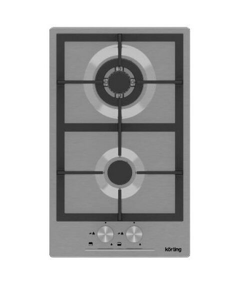Газовая варочная поверхность с 2 конфорками, оснащенная газ-контролем и автоматическим электроподжигом.