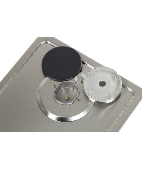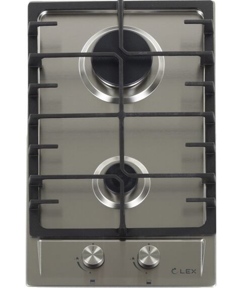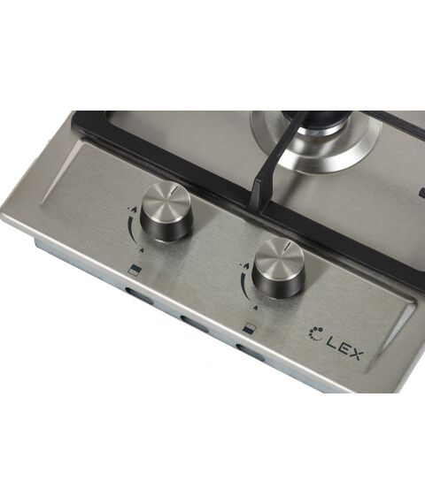 Газовая варочная поверхность LEX GVS 321 IX с 2 конфорками, оснащенная газ-контролем и автоматическим электроподжигом.