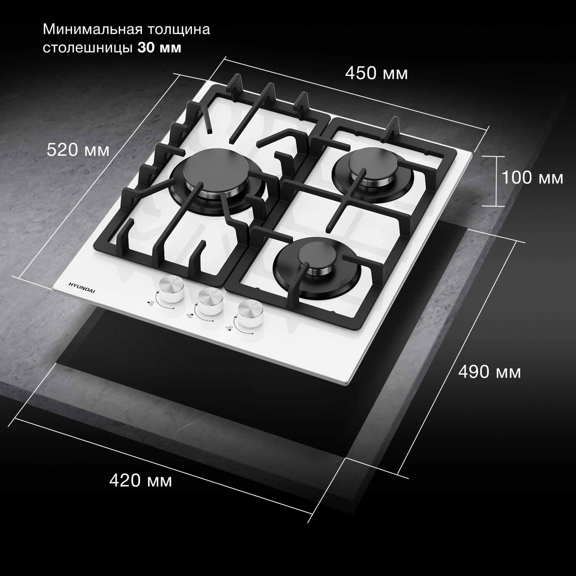 Газовая варочная поверхность Hyundai HHG 4333 WG белый