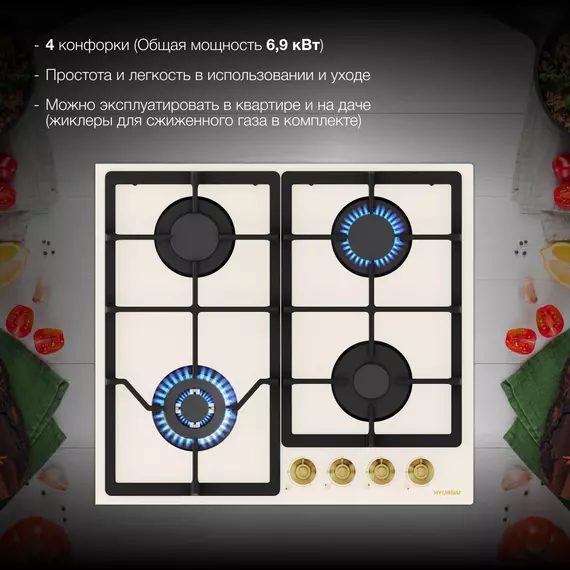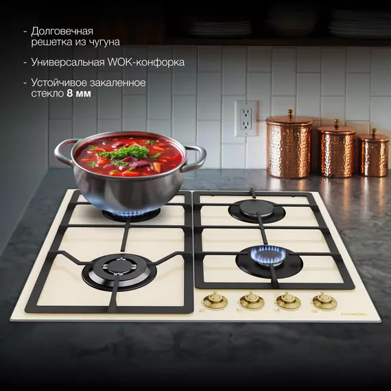 Газовая варочная поверхность Hyundai HHG 6434 BE бежевый