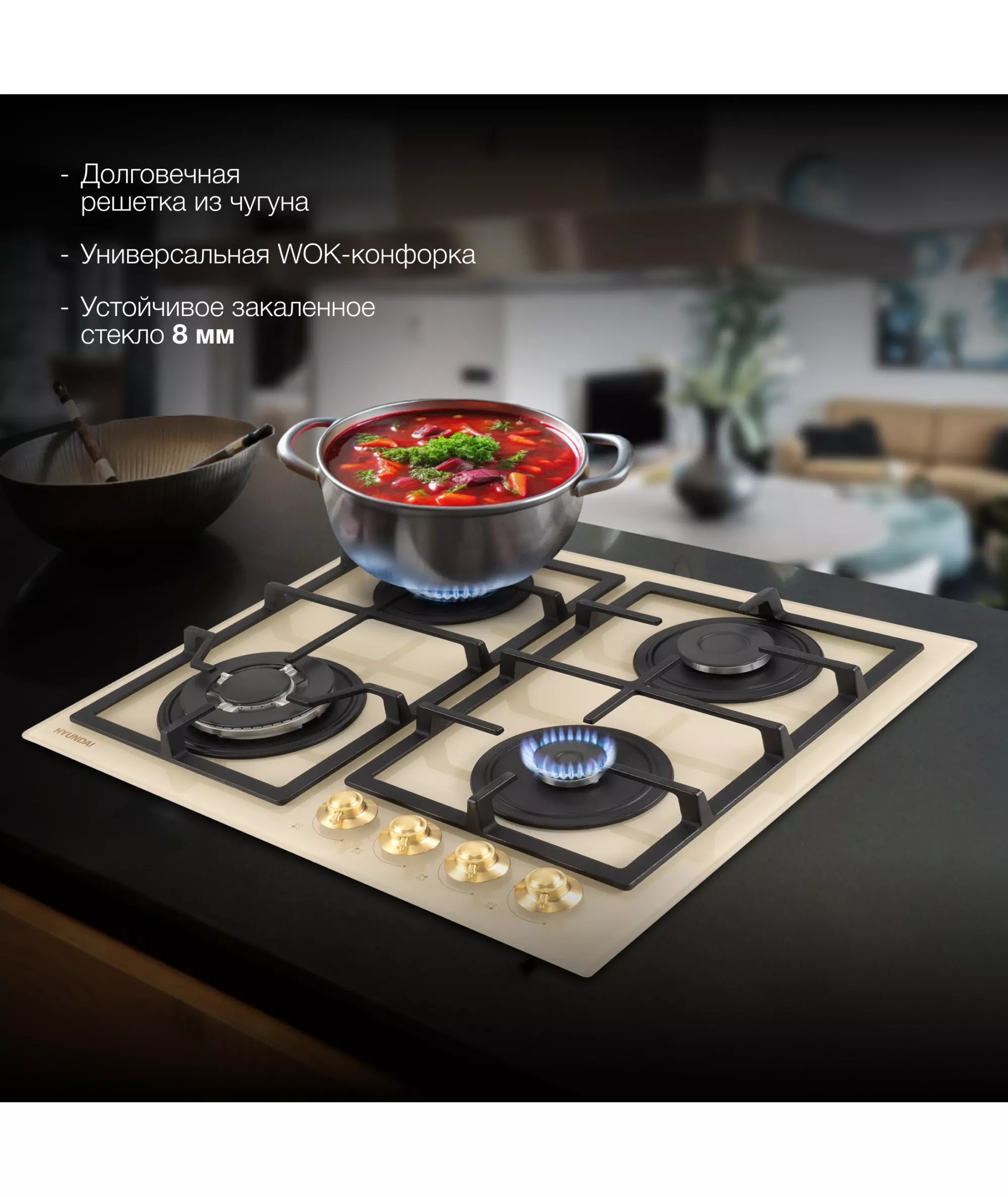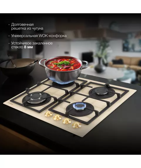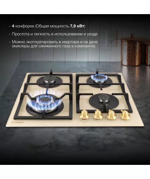 Газовая варочная поверхность Hyundai HHG 6436 BE бежевый
