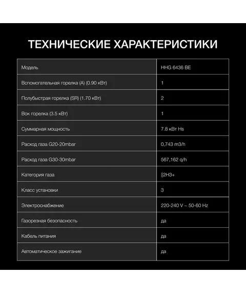 | Суммарная мощность газовых конфорок | 8 Вт |