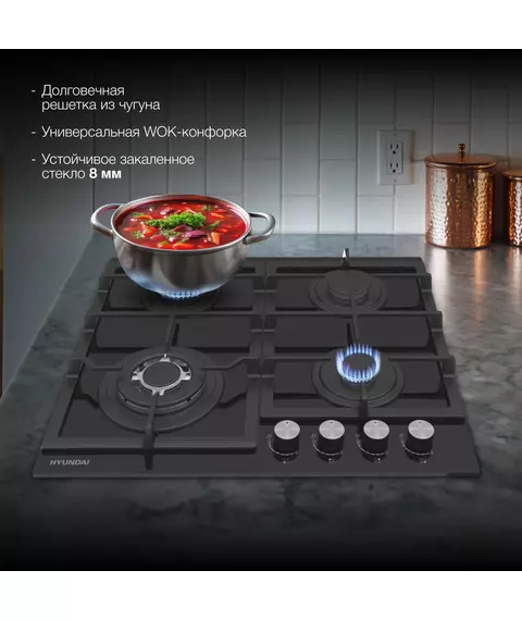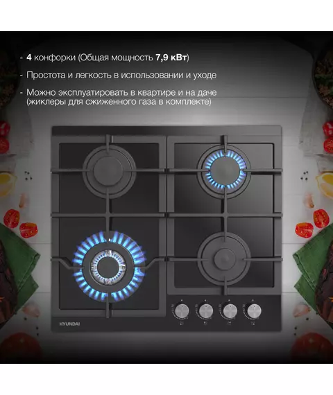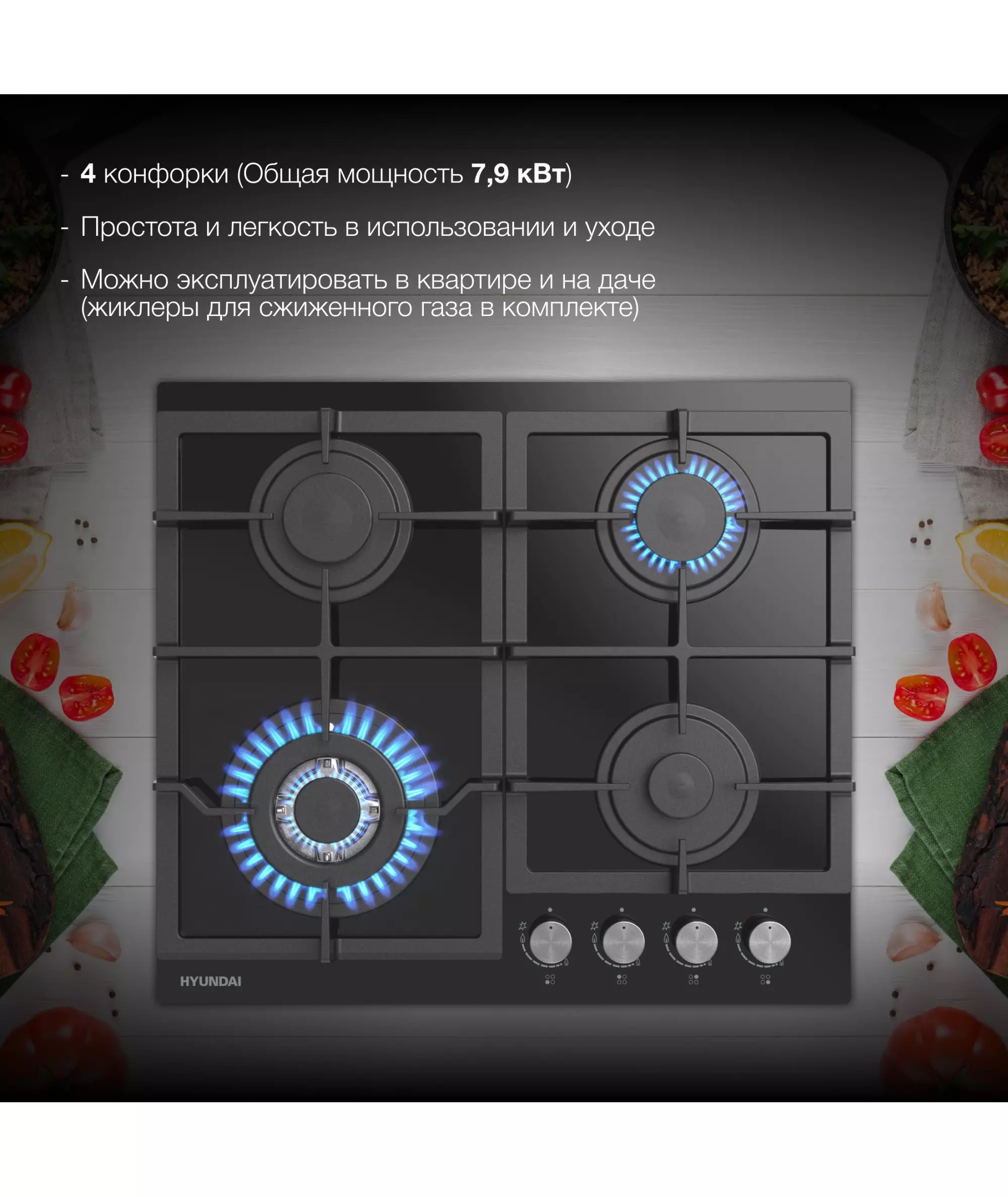 Газовая варочная поверхность Hyundai HHG 6436 BG черный