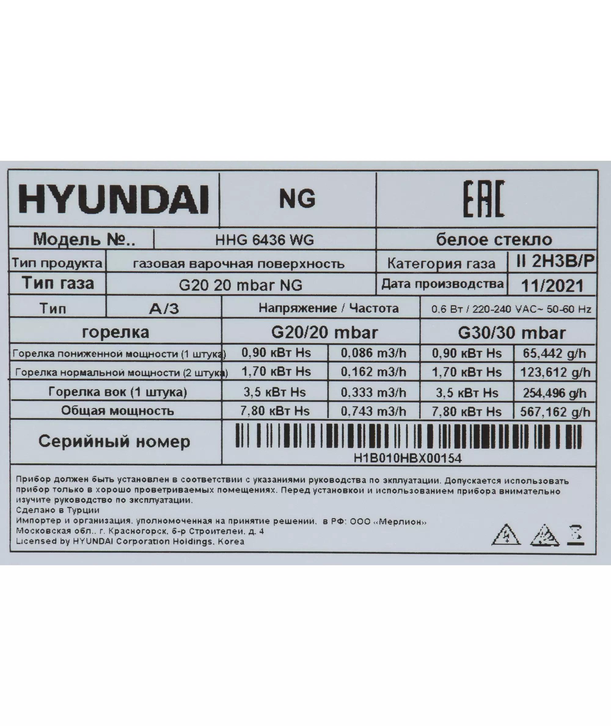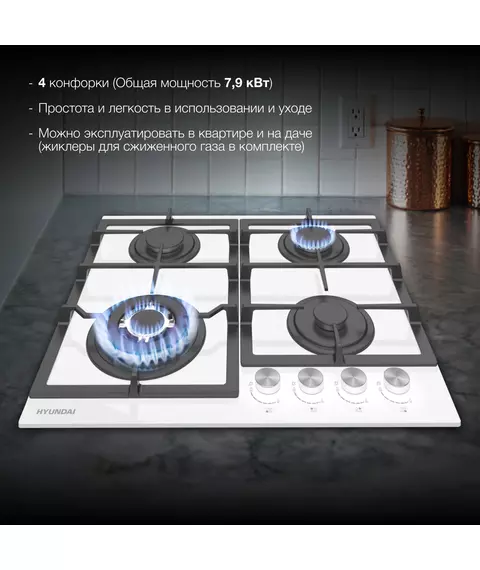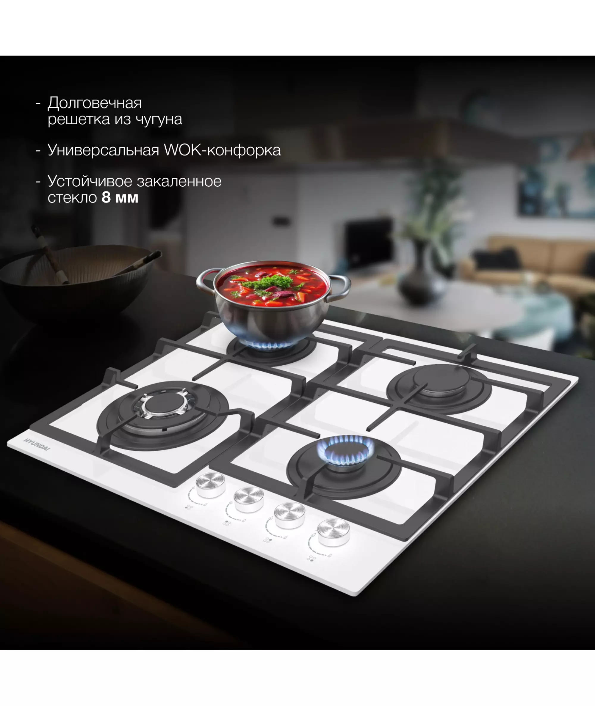 Газовая варочная поверхность Hyundai HHG 6436 WG белый
