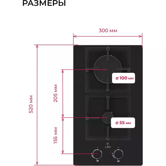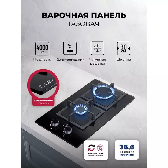 Газовая варочная поверхность LEX GVG 324 BBL черный [CHAO000415]