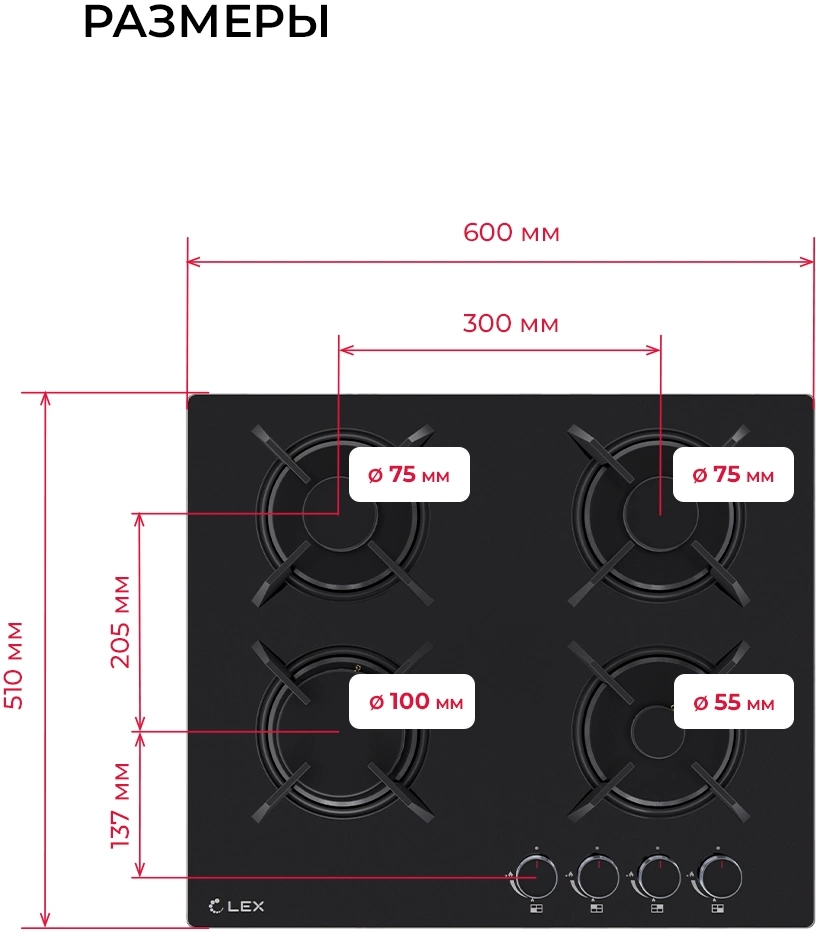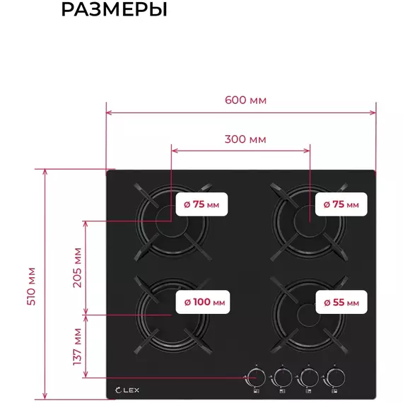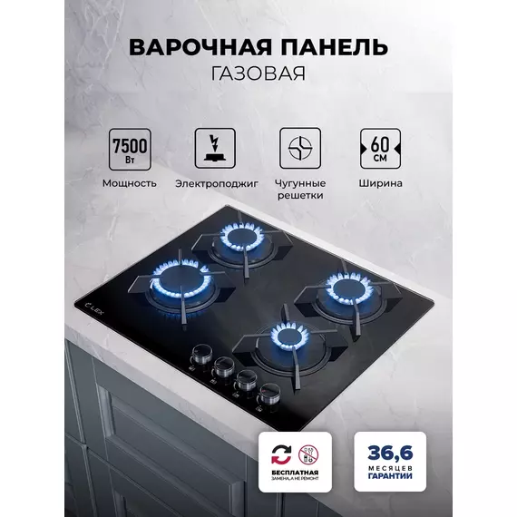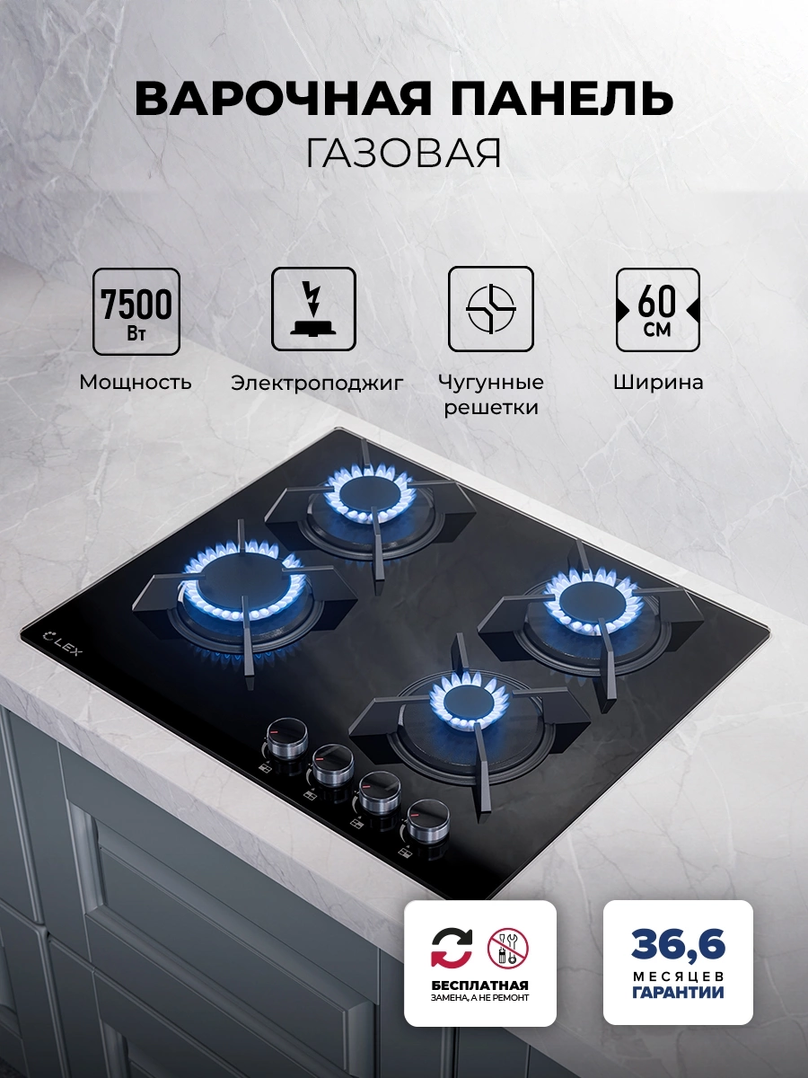 Газовая варочная поверхность LEX GVG 643A BBL черный [CHAO000425]