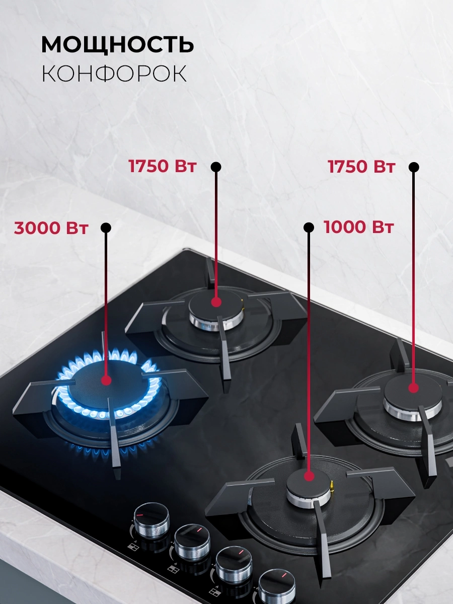 | Общее количество конфорок | 4 |