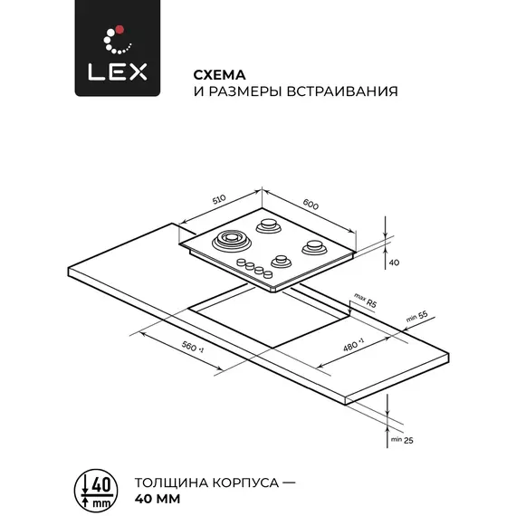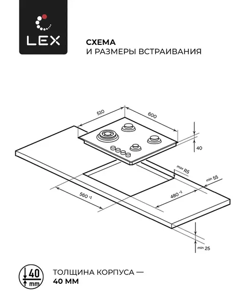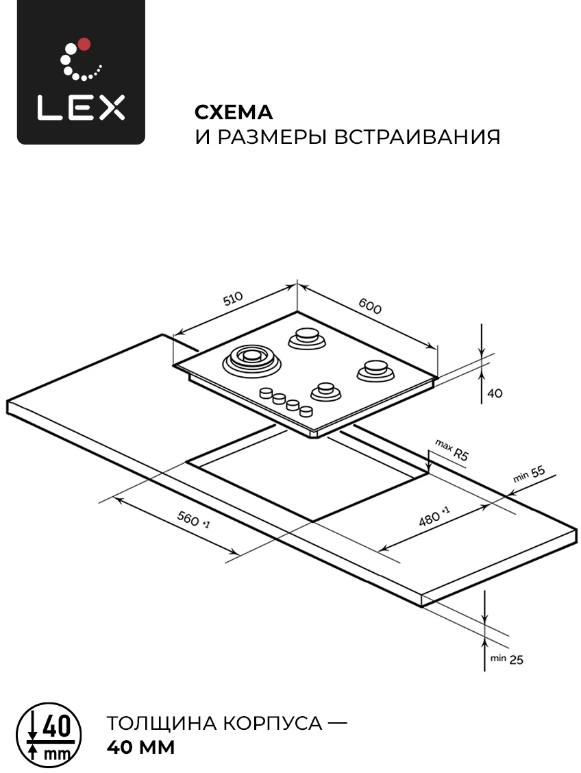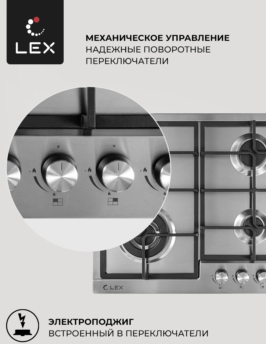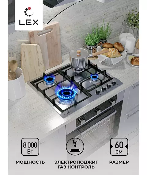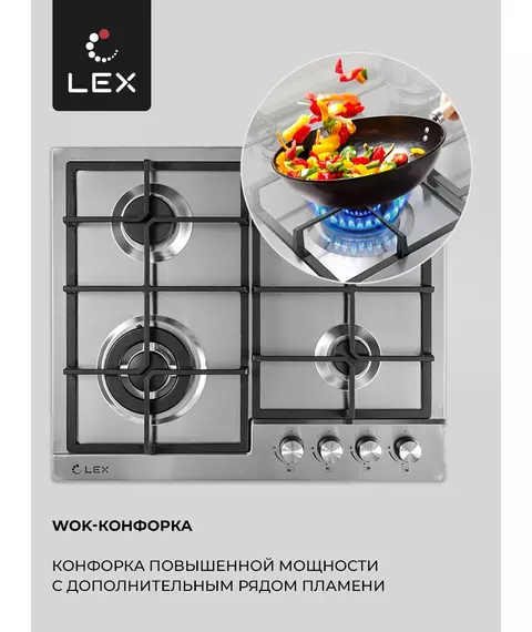 Газовая варочная поверхность LEX GVS 640 IX нержавеющая сталь [CHAO000327]