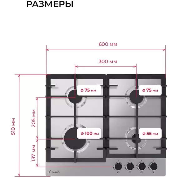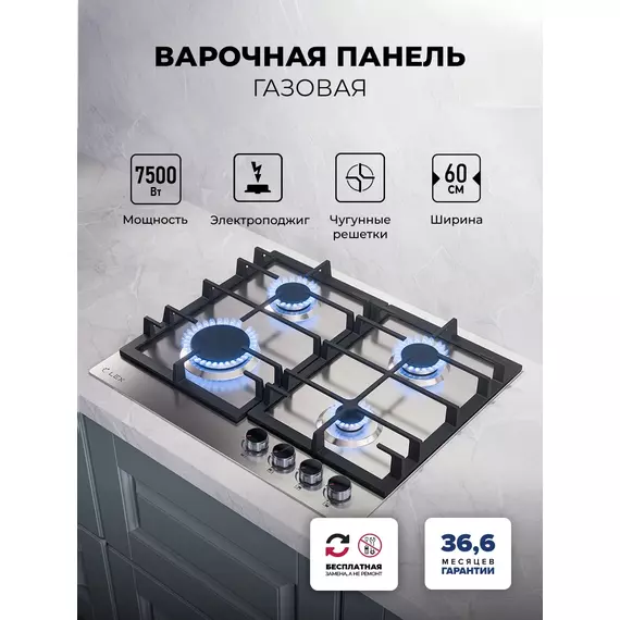 Газовая варочная поверхность LEX GVS 642-1 IX нержавеющая сталь [CHAO000458]