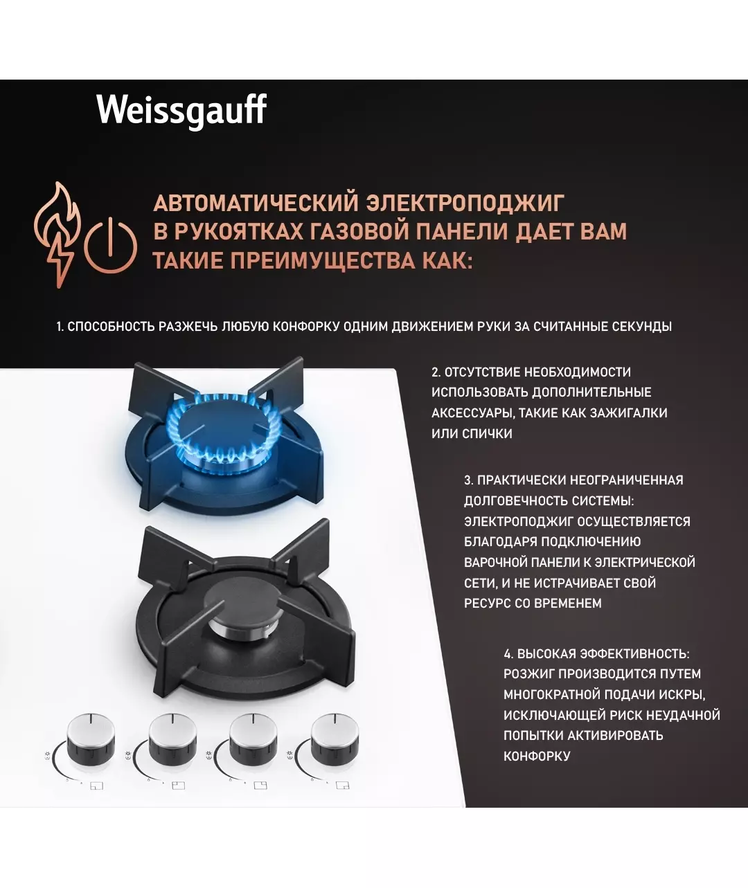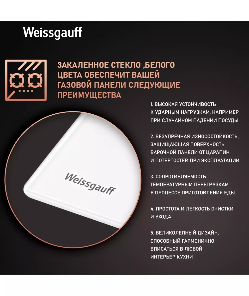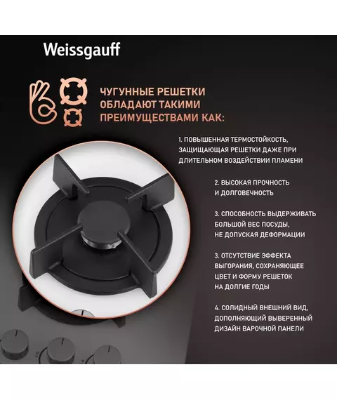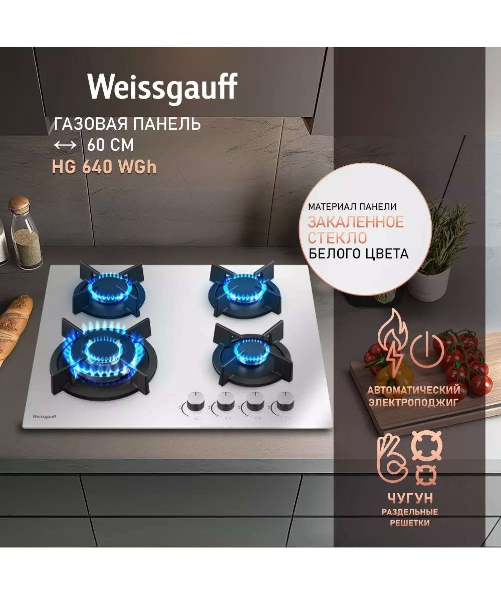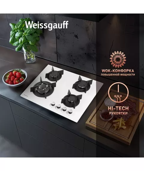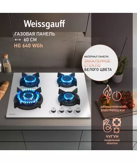 Газовая варочная поверхность Weissgauff HG 640 WGh белый [433582]