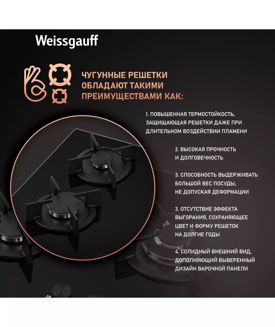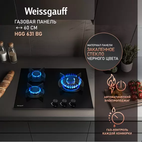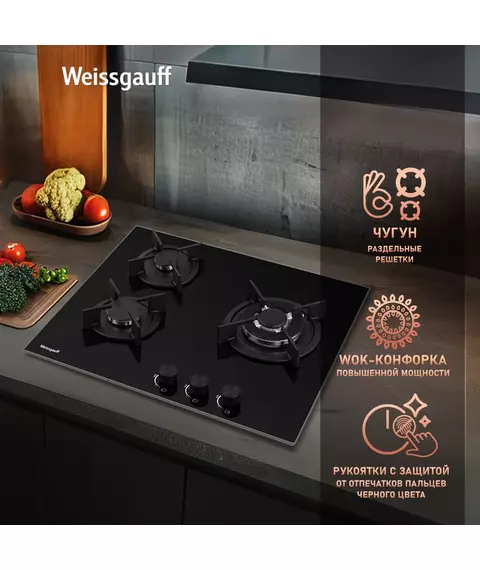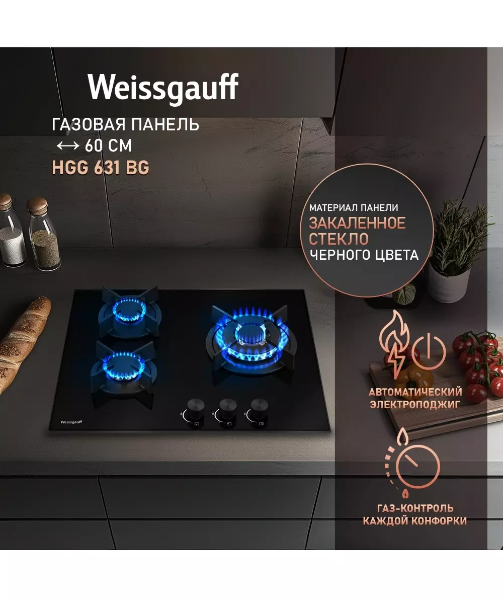 Газовая варочная поверхность Weissgauff HGG 631 BG черный [433533]