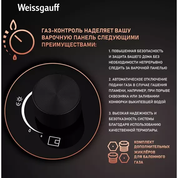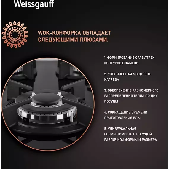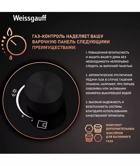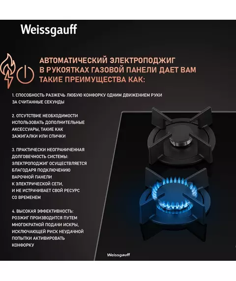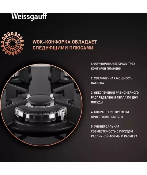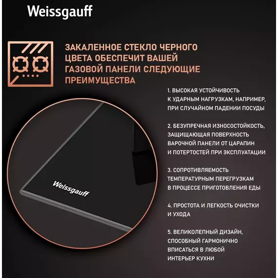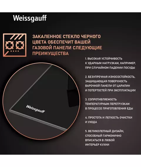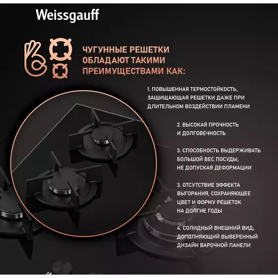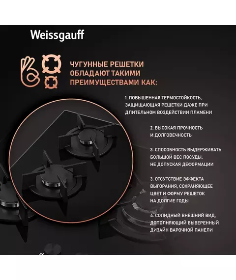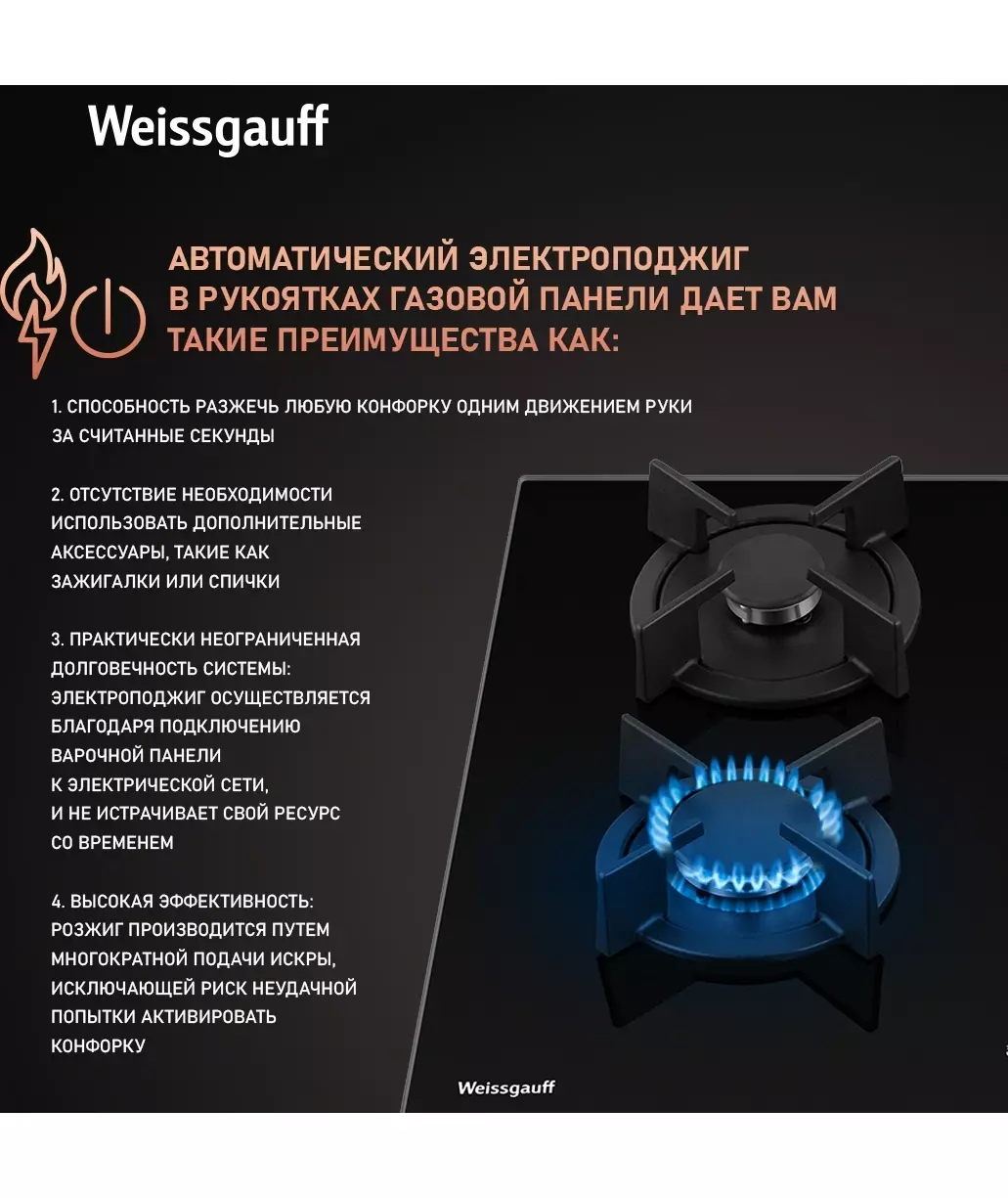 Газовая варочная поверхность Weissgauff HGG 631 BG черный [433533]