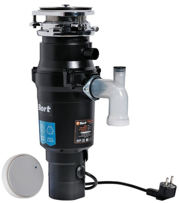 Измельчитель пищевых отходов Bort TITAN 7000 780 Вт, 3 ступени, 3.2 кг/мин, 90 мм
