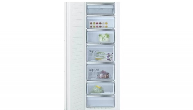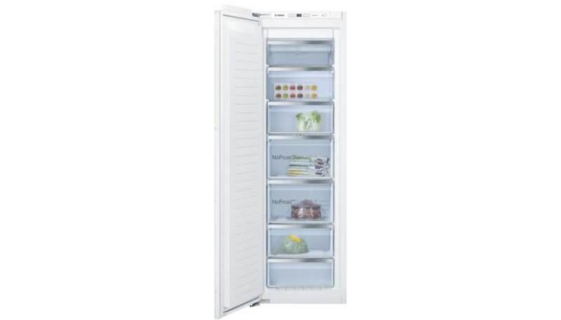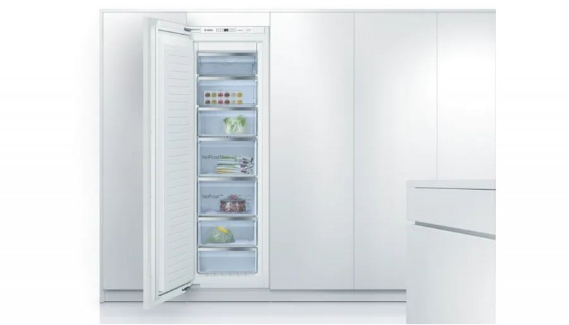 Встраиваемая морозильная камера Bosch Серии 6 имеет полезный объем загрузки в 235 л. и обладает мощностью заморозки 20 кг./сут. В случае отключение электричества сохраняет продукты в замороженном состоянии 22 часа. Шумность работы не превышает 36 дБ. Полная система NoFrost исключает необходимость разморозки. Встроенные сенсоры обеспечивают равномерную заморозку