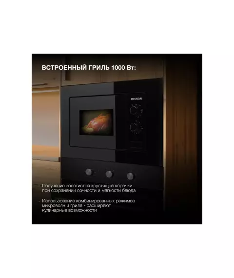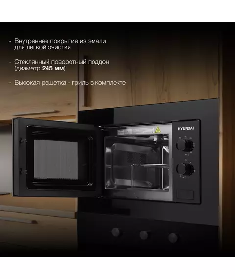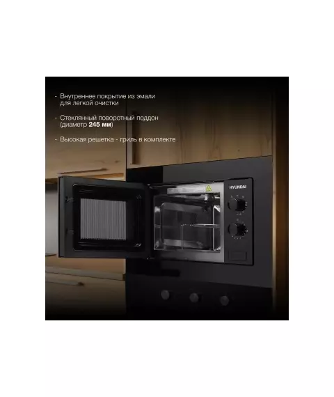Микроволновая печь встраиваемая Hyundai HBW 2030 BG 20л. 800Вт черный