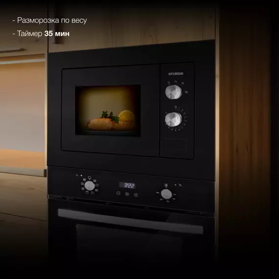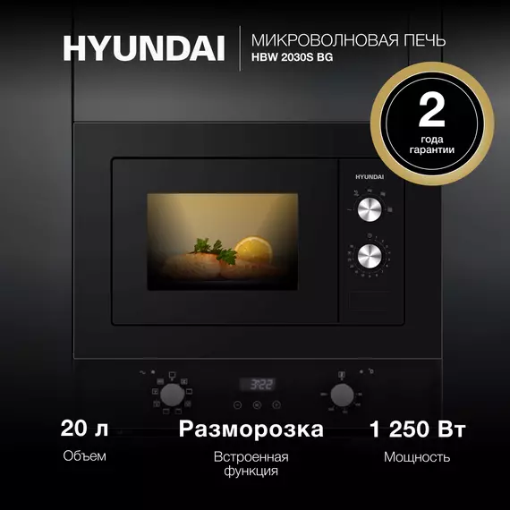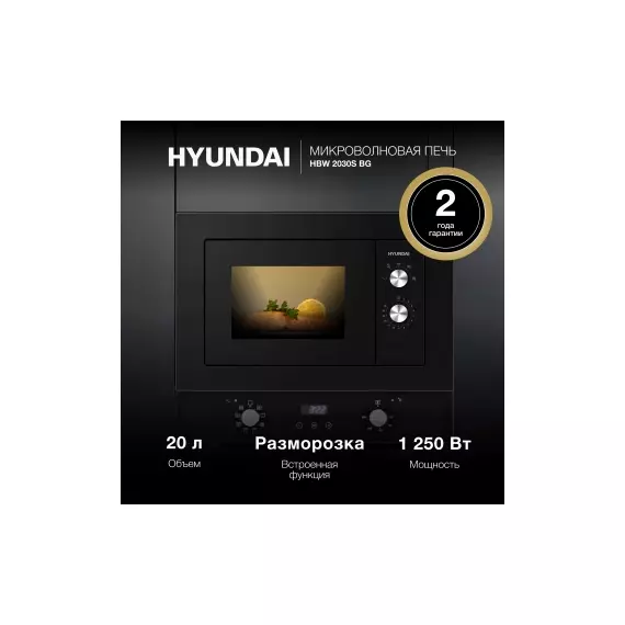 Микроволновая печь встраиваемая Hyundai HBW 2030S BG 20л. 800Вт черный