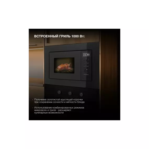 Микроволновая печь встраиваемая Hyundai HBW 2040 BG 20л. 800Вт черный