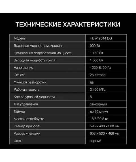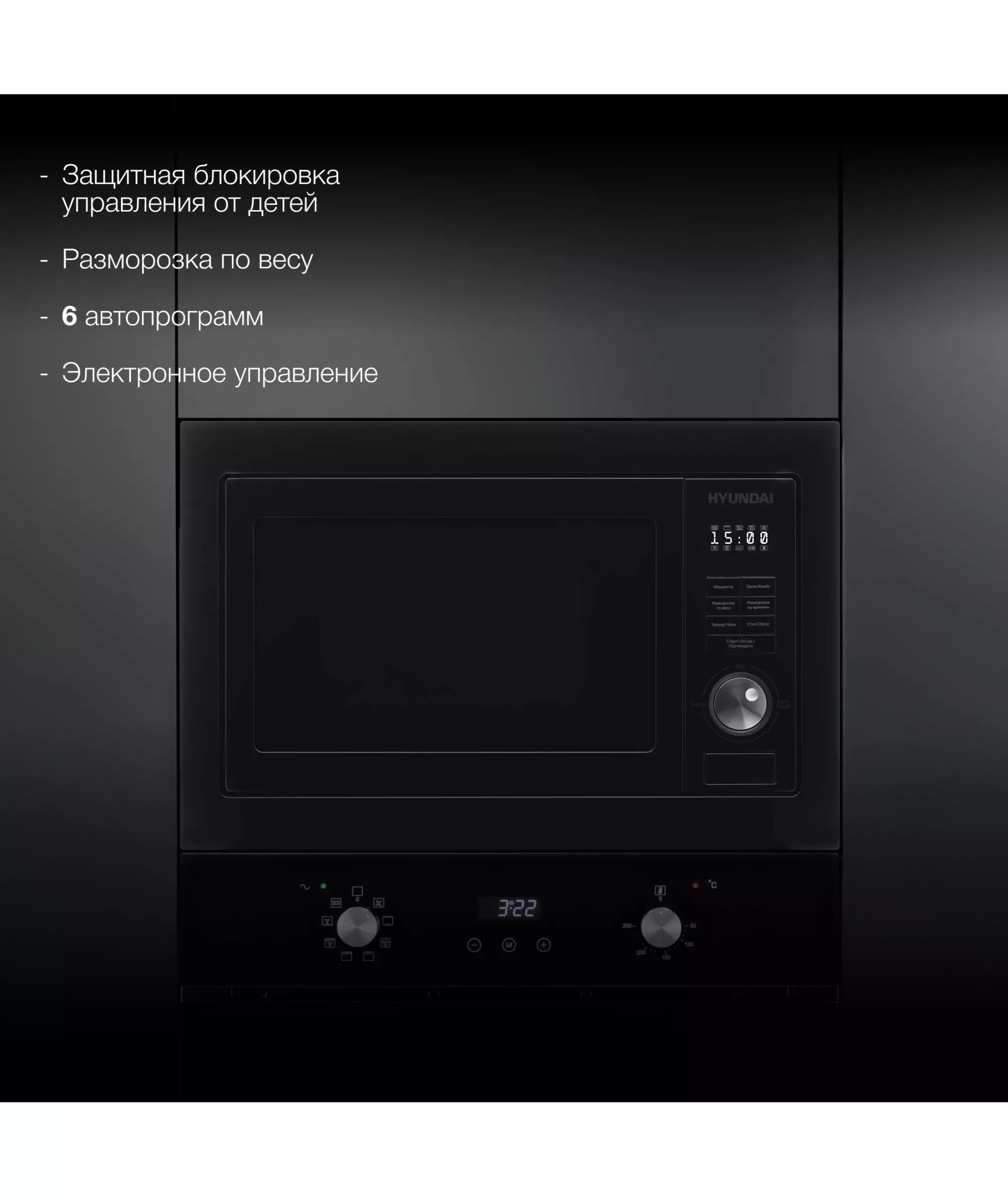 Микроволновая печь Hyundai HBW 2544 BG 25л. 900Вт черный (встраиваемая)