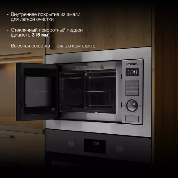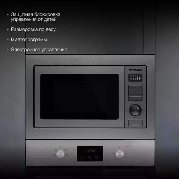 Микроволновая печь встраиваемая Hyundai HBW 2544 IX 25л. 900Вт серебристый