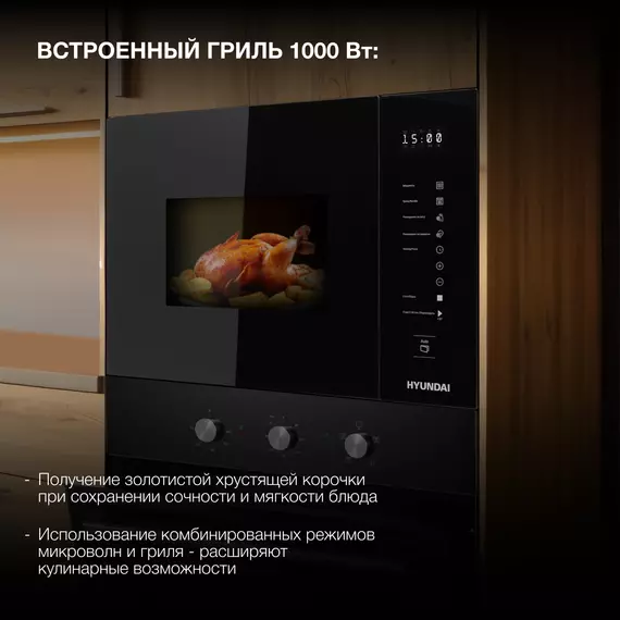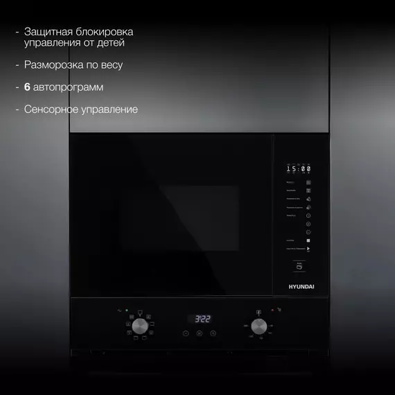 Микроволновая печь встраиваемая Hyundai HBW 2560 BG 25л. 900Вт черный