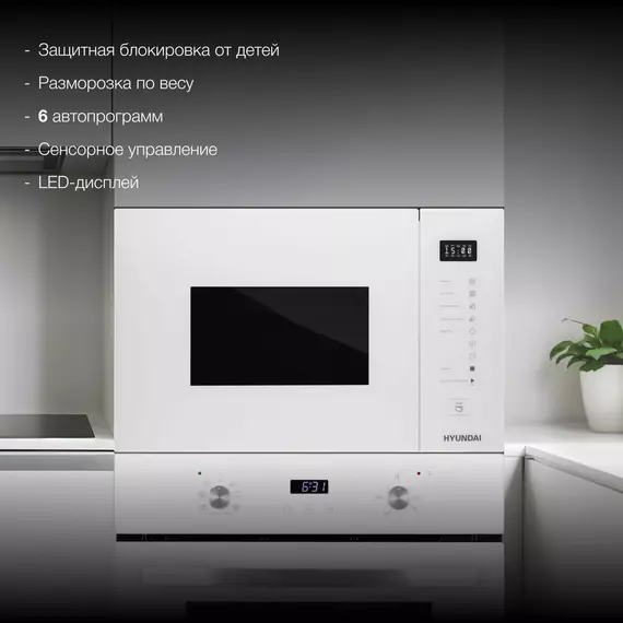 Микроволновая печь встраиваемая Hyundai HBW 2560 WG 25л. 900Вт белый