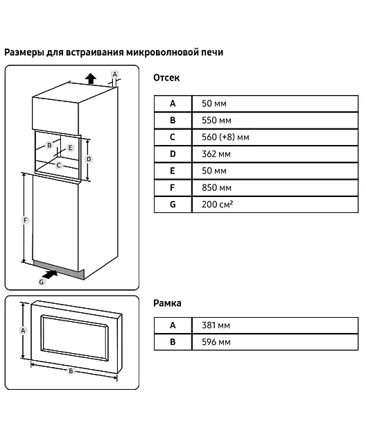 | Тип | Встраиваемая микроволновая печь |