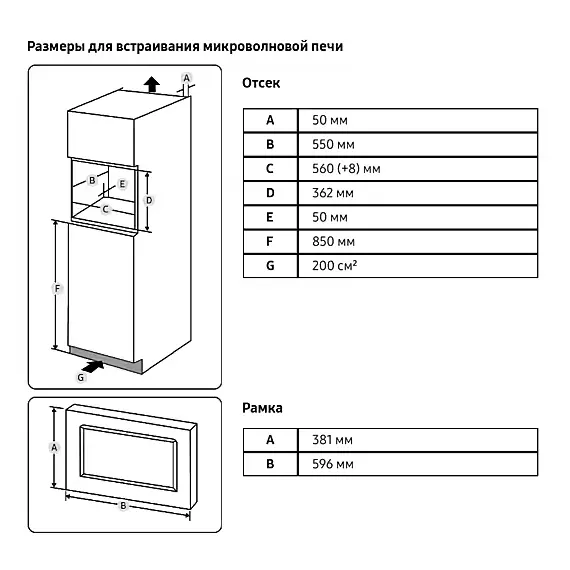 Микроволновая печь Samsung MS23A7013AT/BW 23л. 1150Вт черный (встраиваемая)