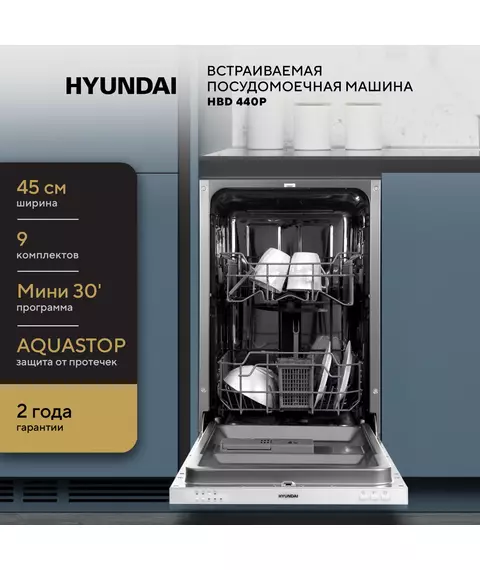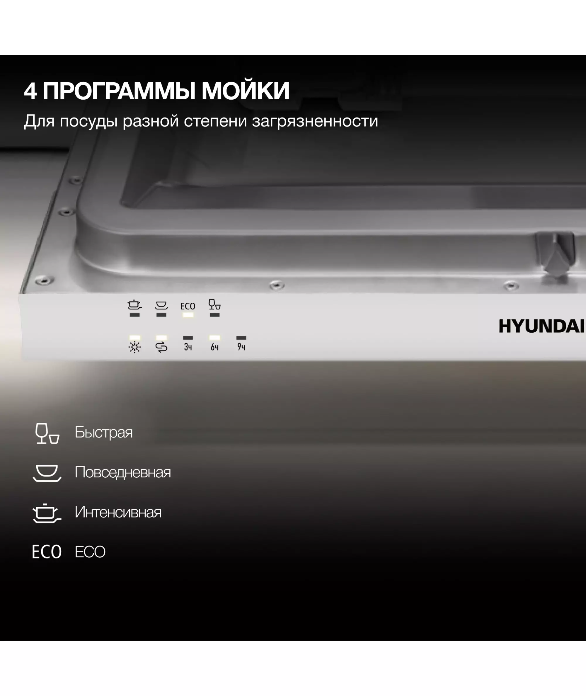 Посудомоечная машина встраив. Hyundai HBD 440P 2100Вт узкая серебристый/белый