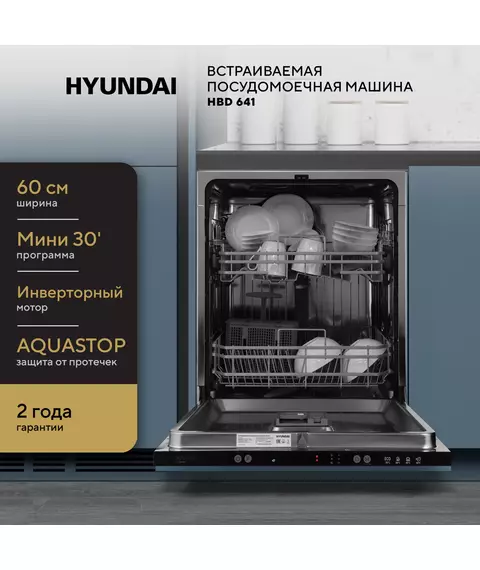 Посудомоечная машина встраиваемая Hyundai HBD 641 2100Вт полноразмерная нержавеющая сталь инвертер