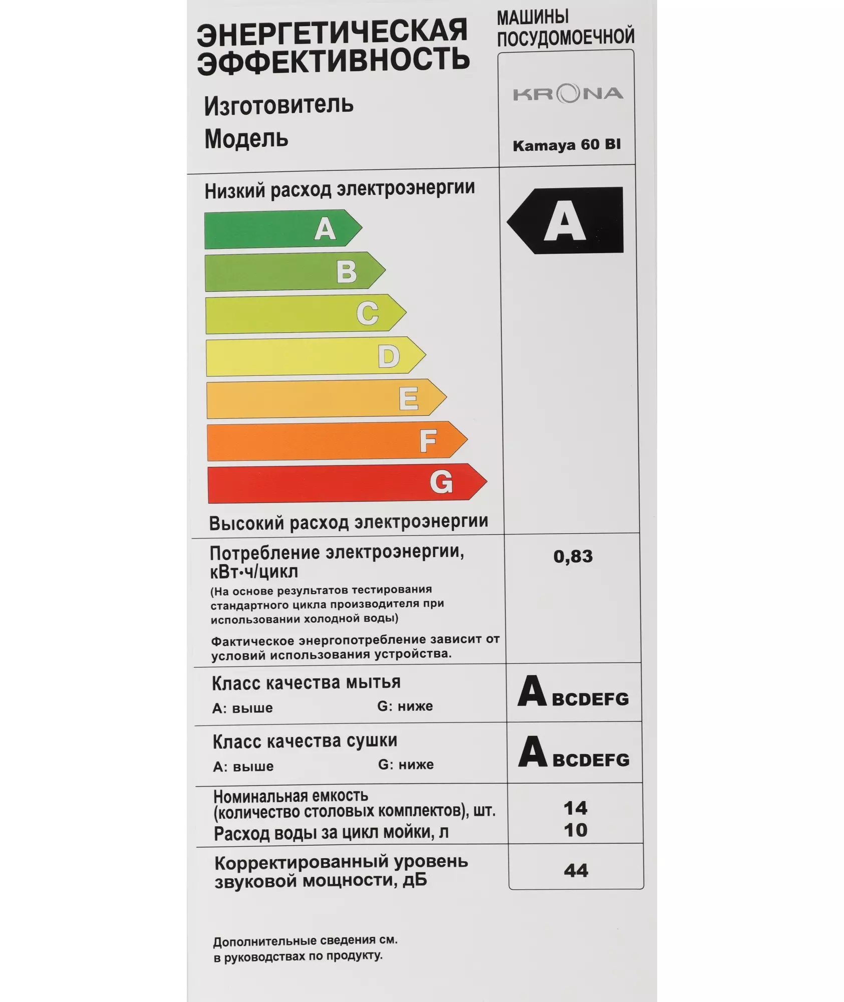 | Класс энергопотребления | A++ |