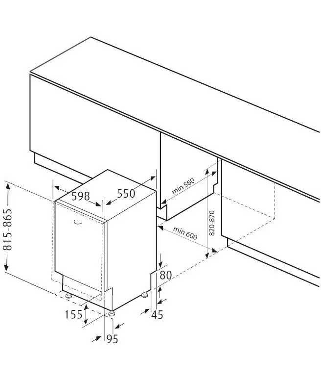 | Размеры для встраивания | 87x60x56см |