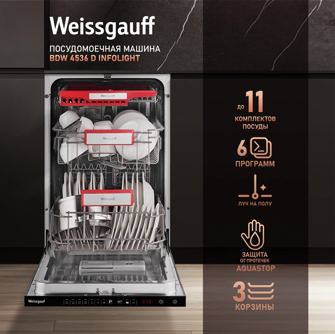 Встраиваемая посудомоечная машина Weissgauff BDW 4536 D Infolight узкая [431381]