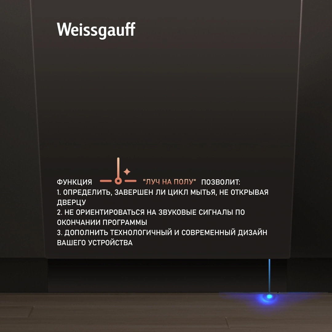 | Индикация | луч на полу, наличия ополаскивателя, наличия соли |