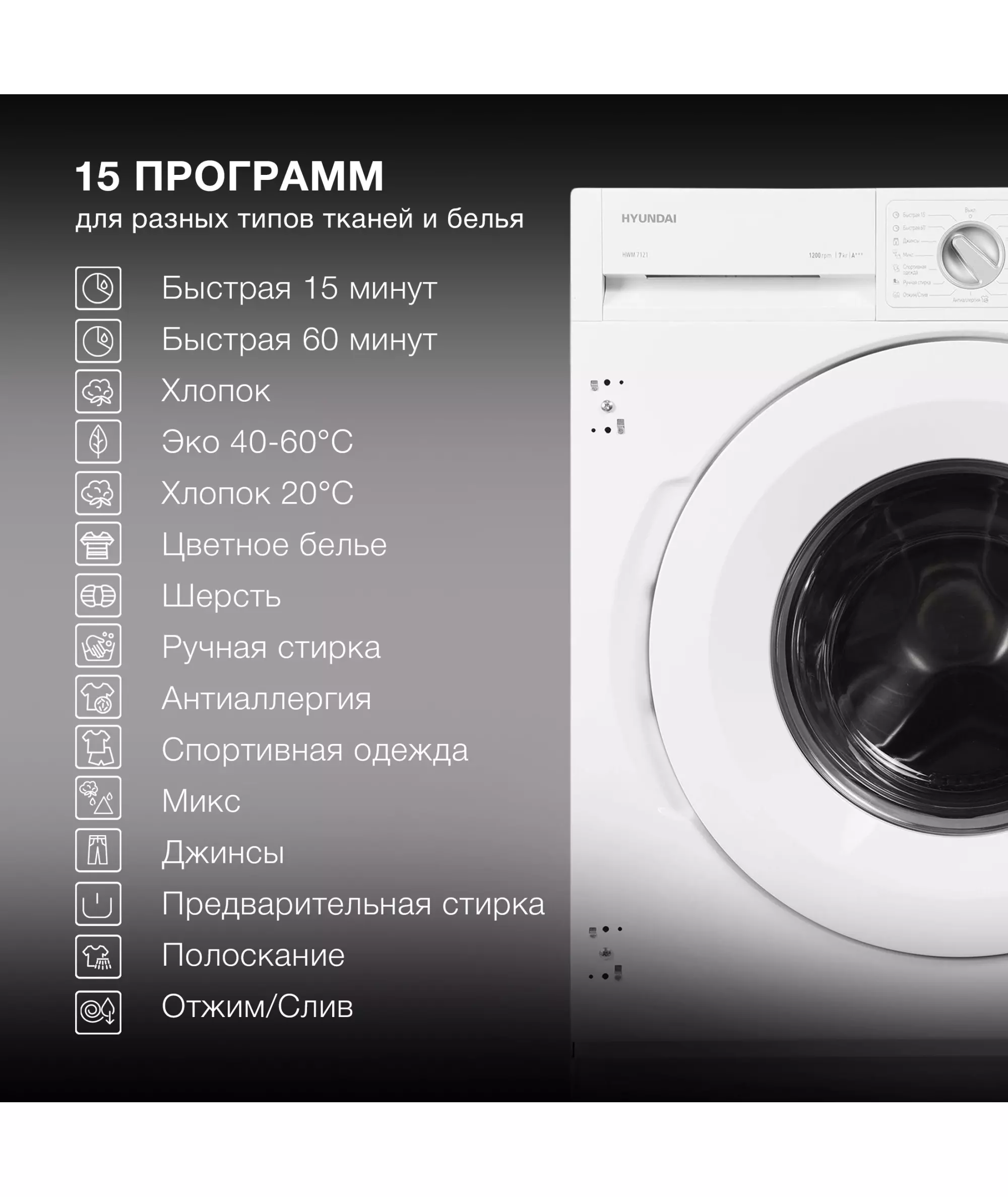 Стиральная машина Hyundai HWM 7121 класс: A+++ загрузка до 7кг отжим: 1200об/мин белый