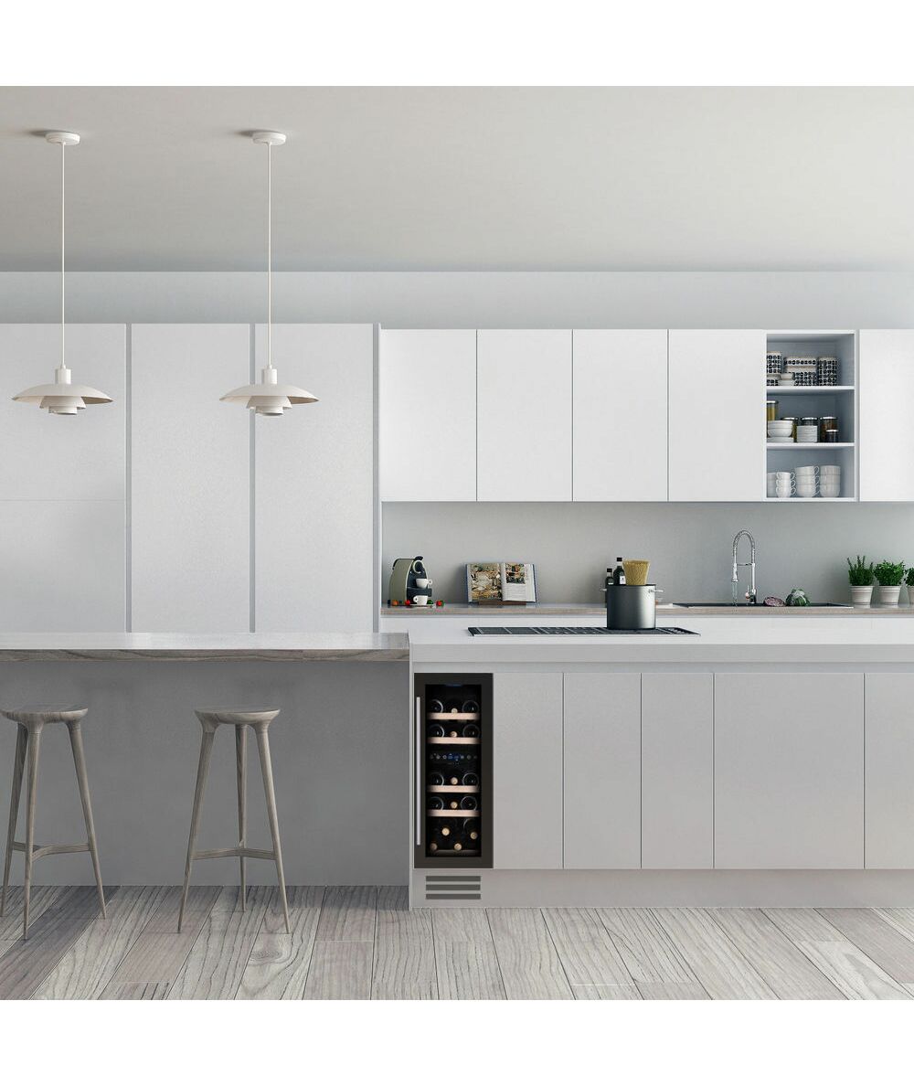 - Встроенная система вентиляции создаёт необходимую циркуляцию воздуха для правильной работы винного холодильника