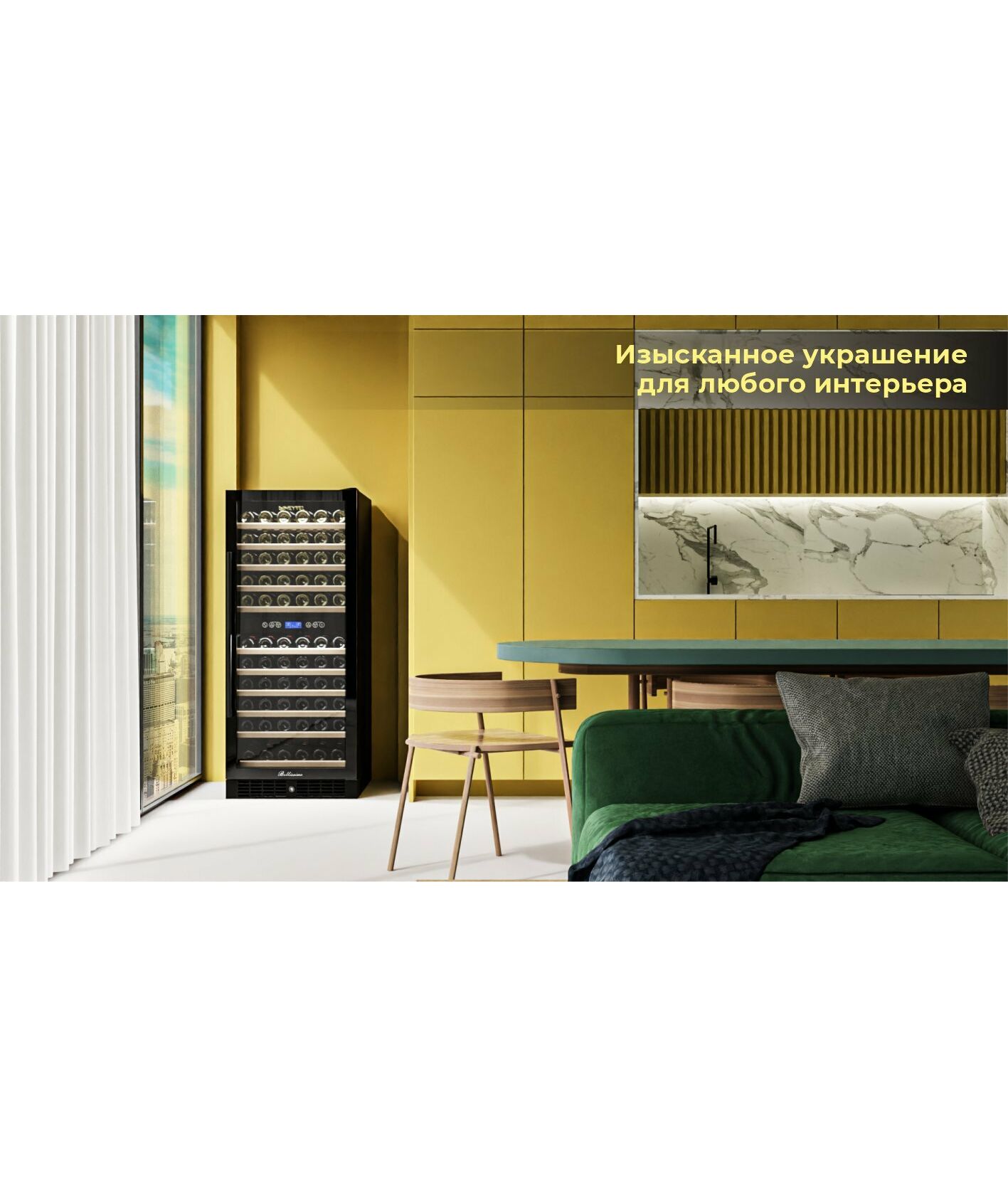 - Вместимость 126 бутылок 0,75 л;