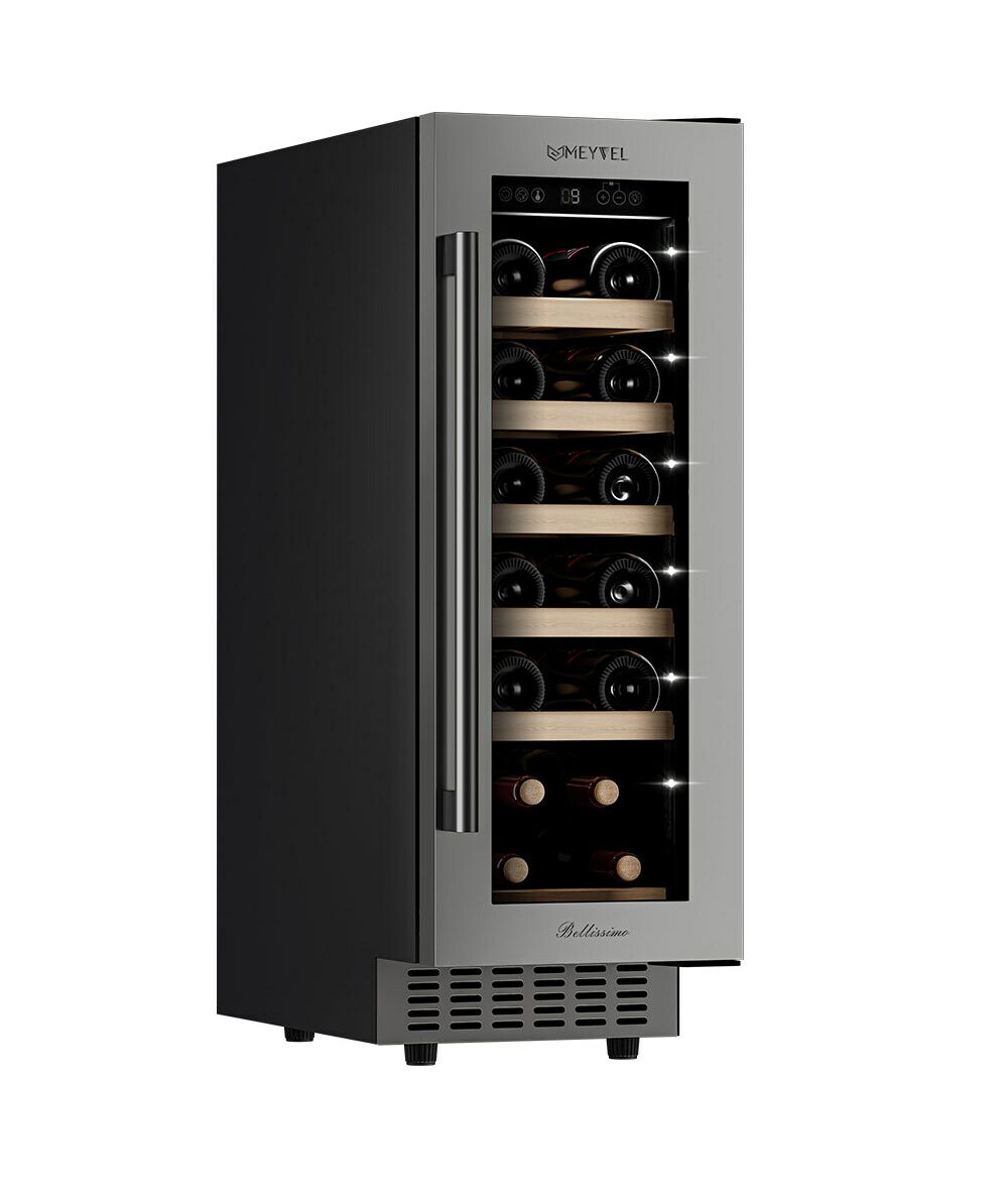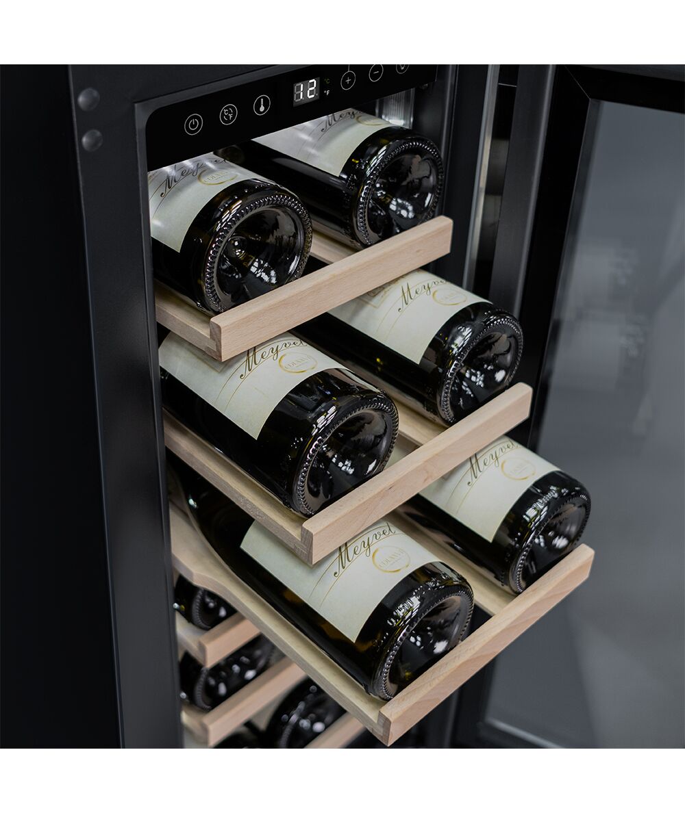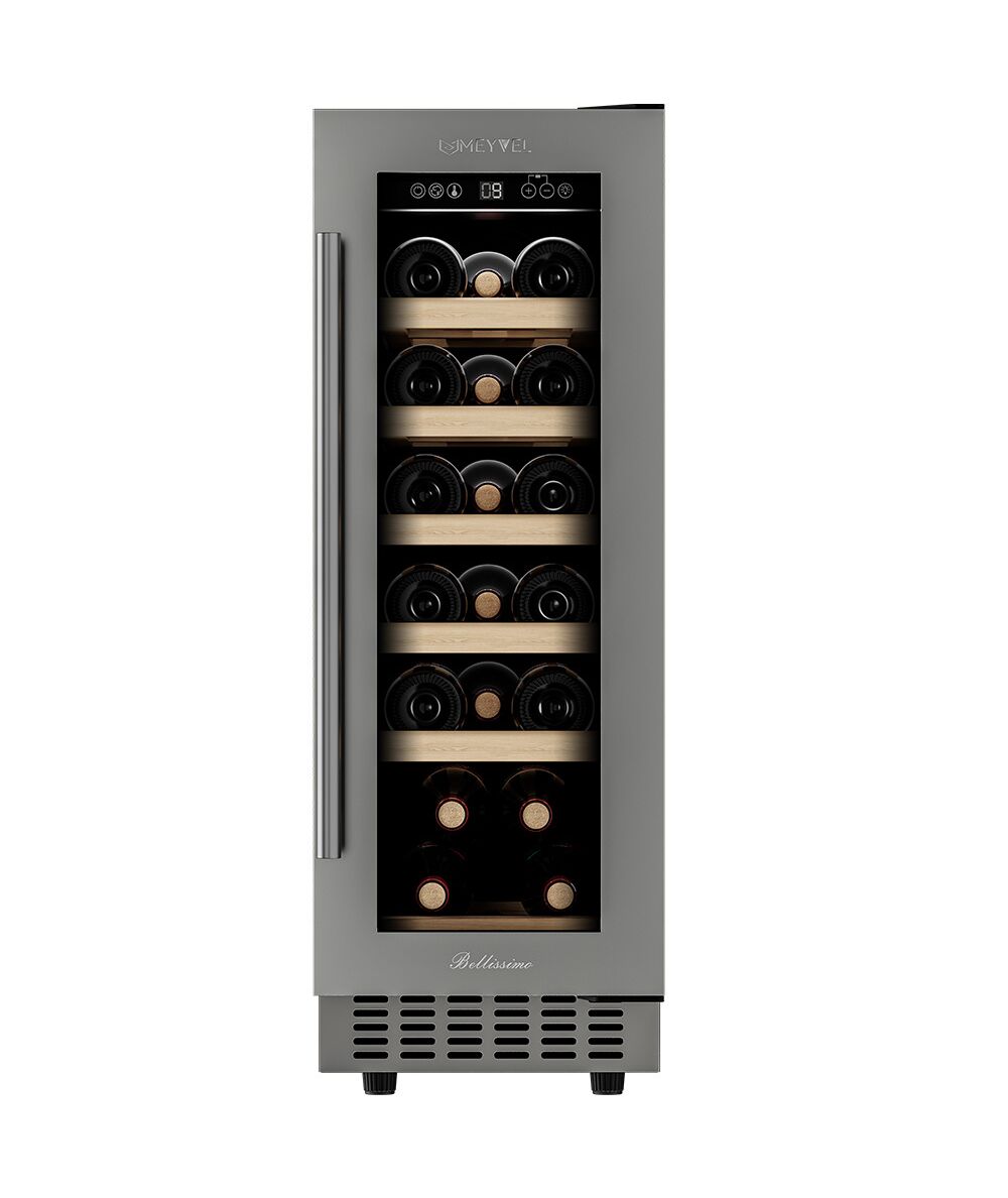 - Компрессорный винный шкаф Meyvel MV19-KST1 обладает оптимальной вместимостью и даёт возможность разместить до 19 бутылок стандартного типа Бордо (0,75 л). Располагаются они на выдвижных полках из дерева. Внутреннее пространство шкафа поддерживает комфортную для вина температуру от +5°C до +20°C. Так же, эта модель поддерживает влажность в диапазоне 60-80%, как в настоящем винном погребе.