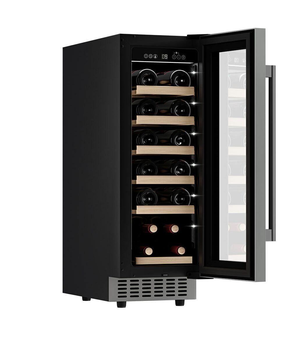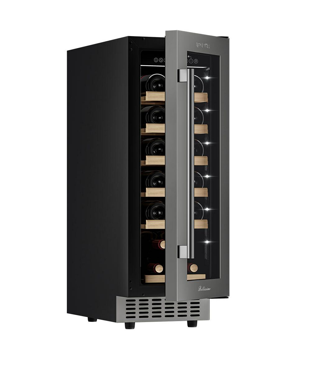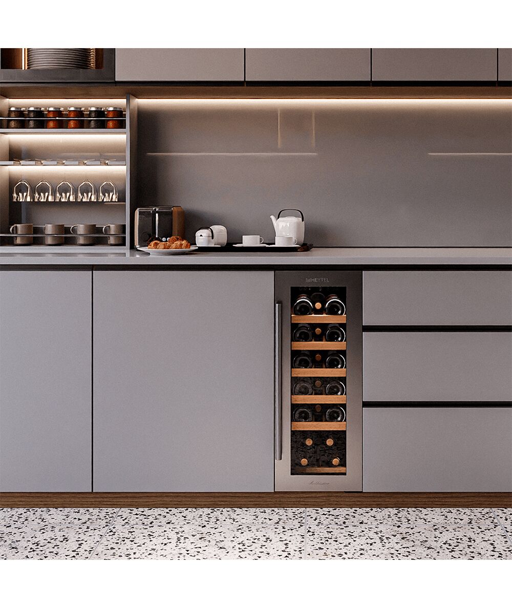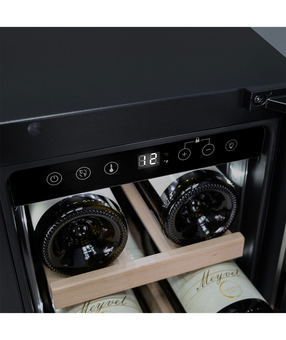 - Компрессорный винный шкаф Meyvel MV19-KST1 обладает оптимальной вместимостью и даёт возможность разместить до 19 бутылок стандартного типа Бордо (0,75 л). Располагаются они на выдвижных полках из дерева. Внутреннее пространство шкафа поддерживает комфортную для вина температуру от +5°C до +20°C. Так же, эта модель поддерживает влажность в диапазоне 60-80%, как в настоящем винном погребе.