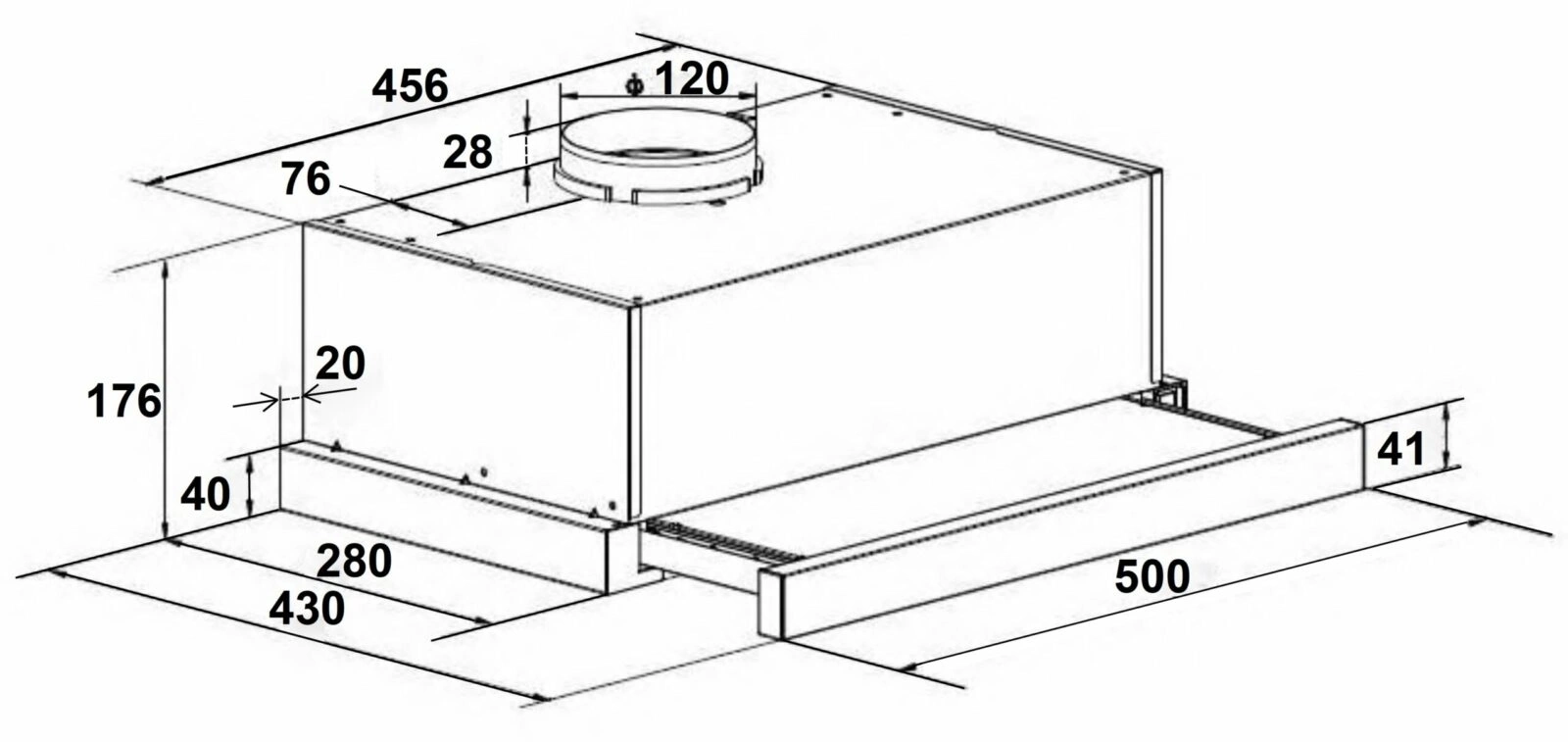 Вытяжка LEX Hubble 500 встраиваемая черный управление: кнопочное (1 мотор) [CHAT000084]