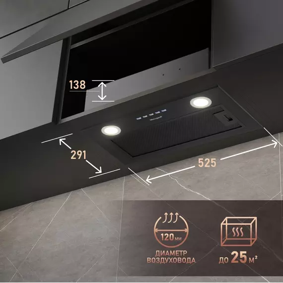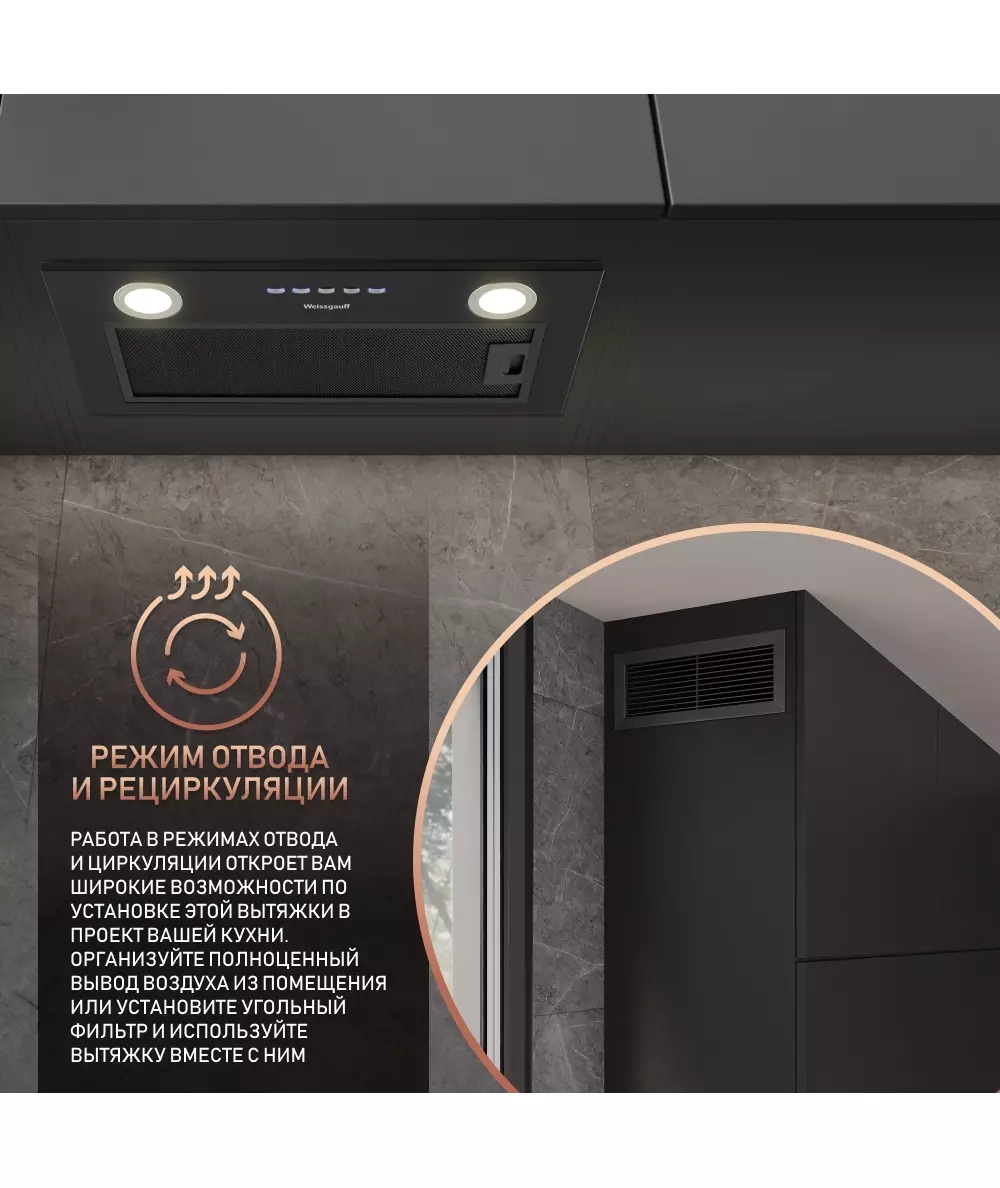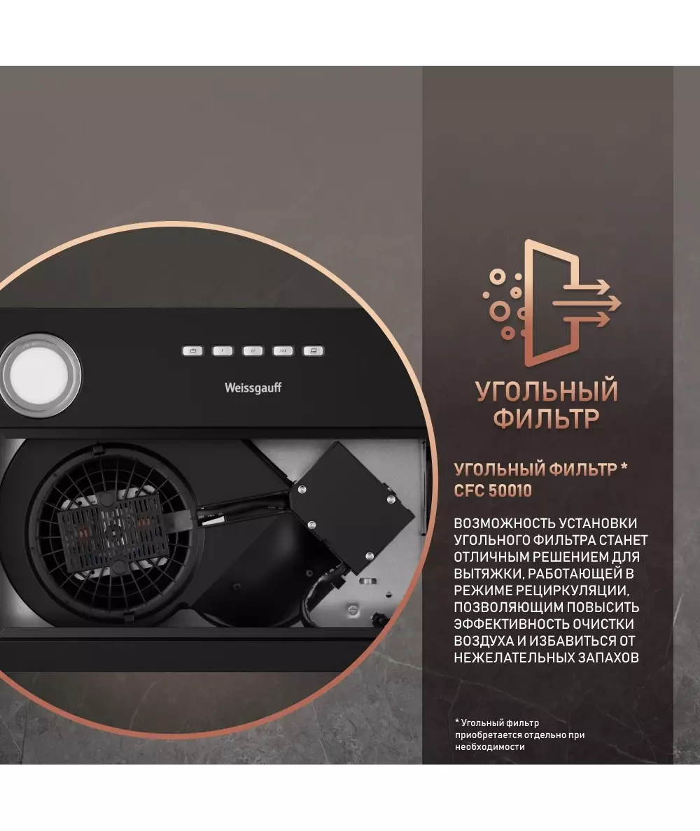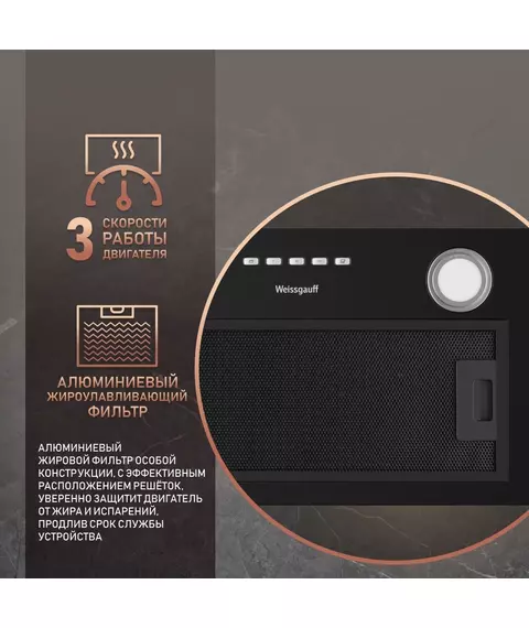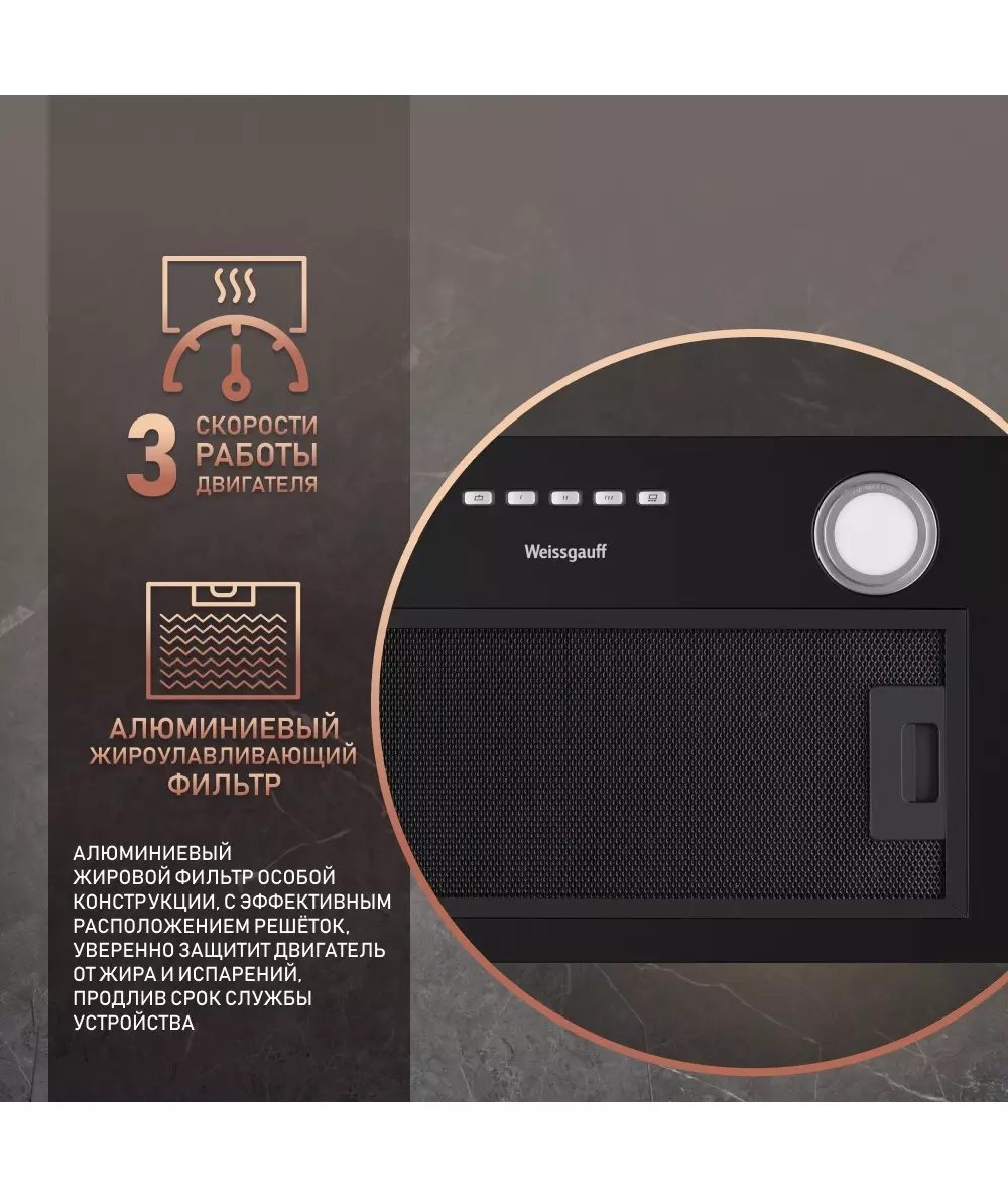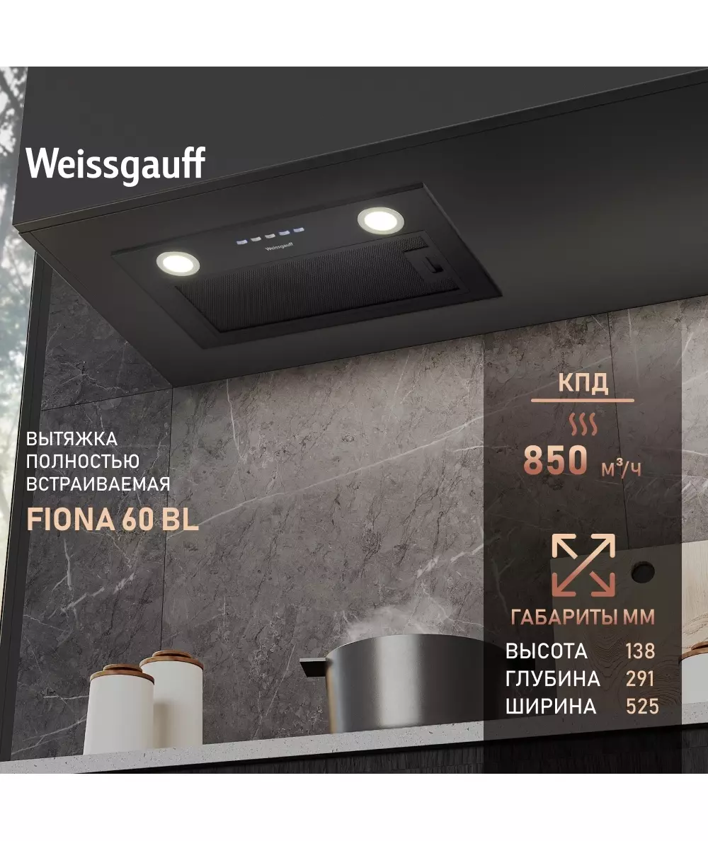 Вытяжка Weissgauff Fiona 60 BL черный управление: кнопочное (1 мотор) [433179]