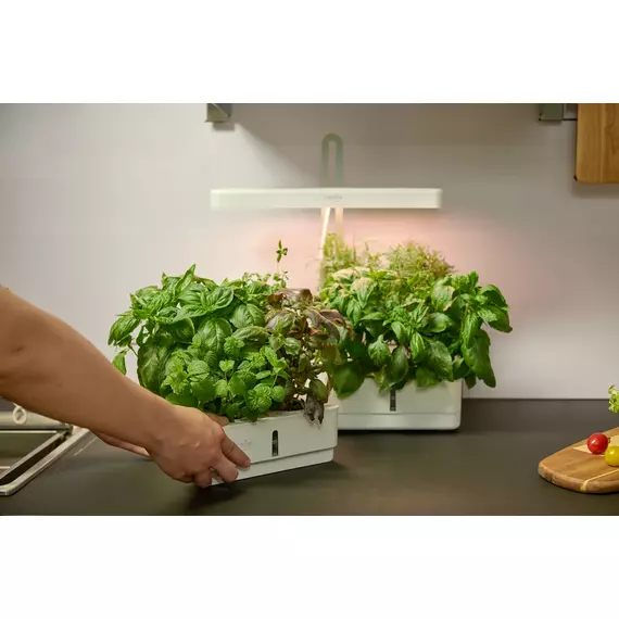 Превратить стол или подоконник на кухне в живой зеленый садик или мини-огород очень просто! Система для проращивая оснащена специальной LED-лампой, спектр которой восполняет дефицит естественного света. Подойдет всем, кто хотел попробовать вырастить зелень, не уделяя слишком много времени уходу.