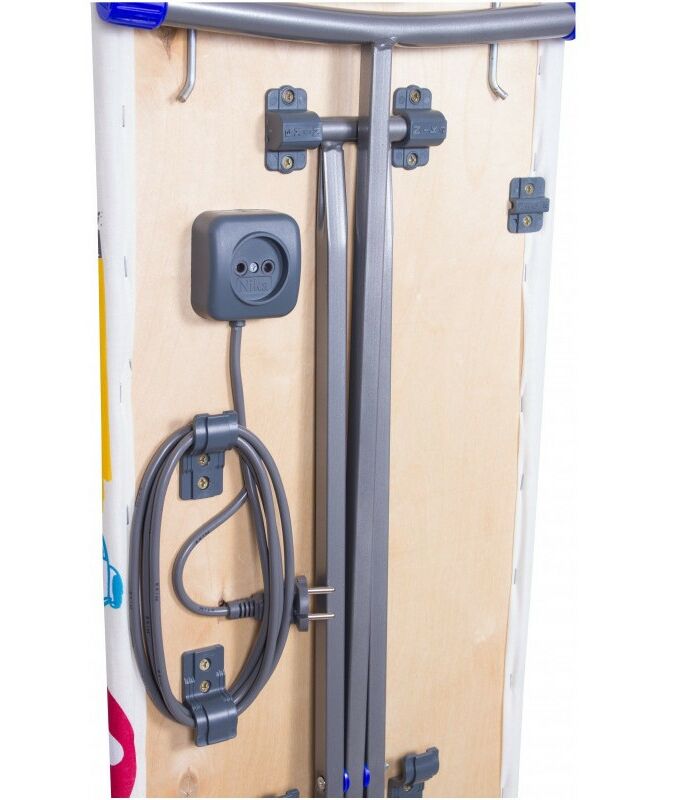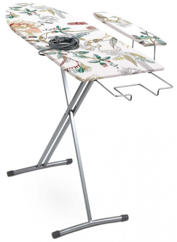 - Дополнительная информация: гладильная поверхность – фанера; размеры в сложенном виде (ДхШхВ) – 1300х345х60 мм; максимальная нагрузка на гладильную поверхность 15кг; электросоединитель 1,6 м; чехол несъемный