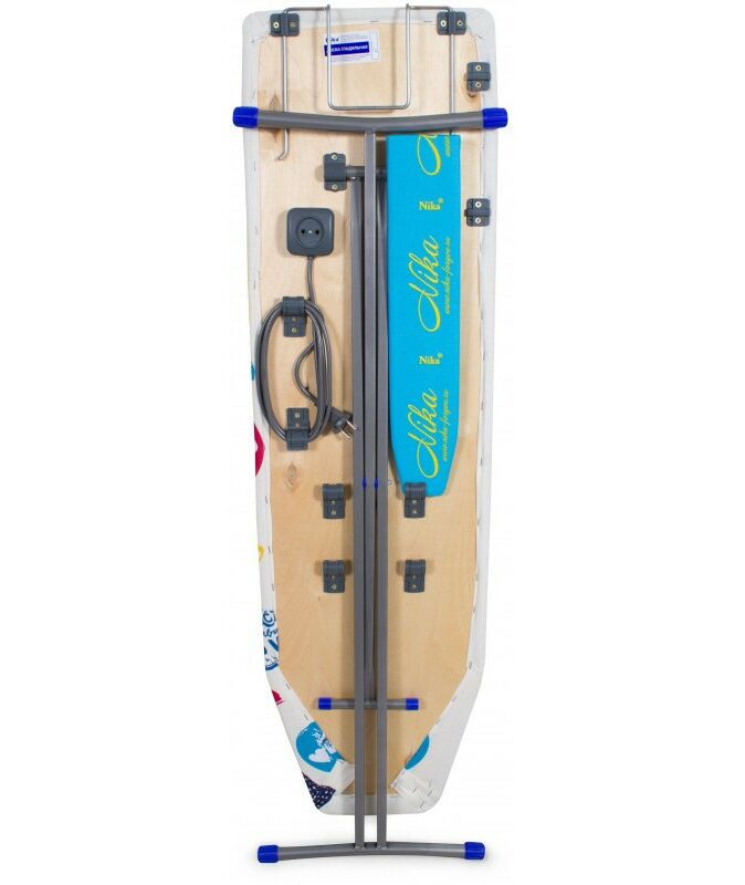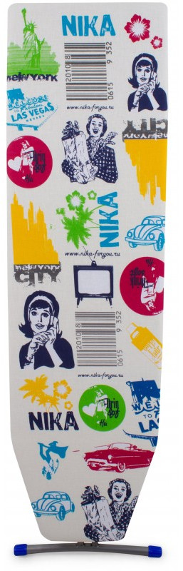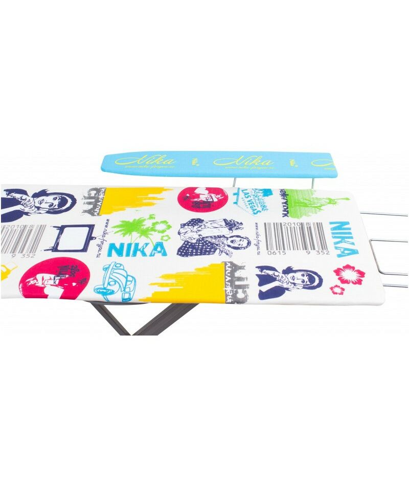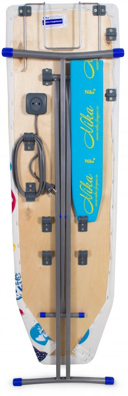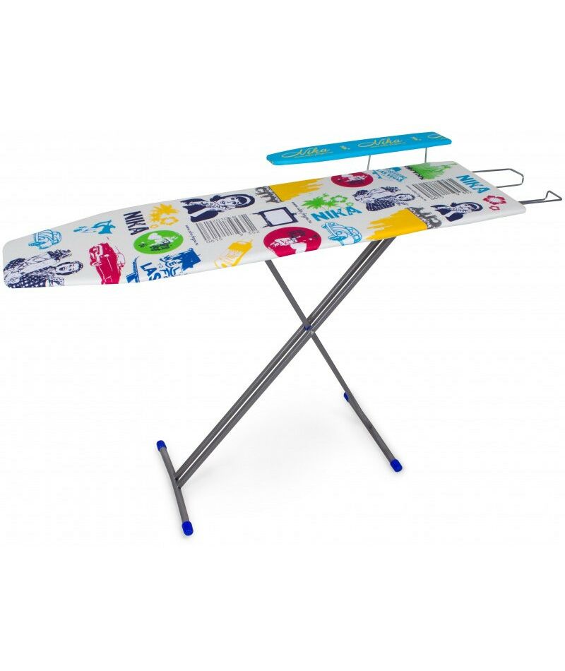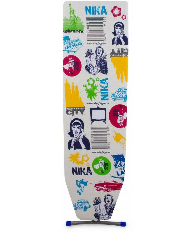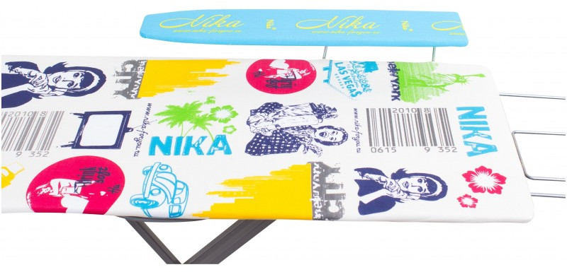 - Гладильная доска «Ника» изготовлена из облегчённой мебельной трубы. Рабочая поверхность выполнена из фанеры и обтянута чехлом из качественной хлопчатобумажной ткани. Ножки имеют пластиковые наконечники, что делает доску более устойчивой. Ножки шарнирно соединены между собой болтами, что позволяет складывать доску в плоскую конструкцию. С помощью механизма регулировки высоты вы можете устанавливать нужную высоту стола.