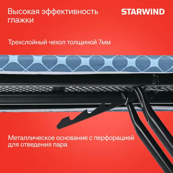 Гладильная доска STARWIND SW-IB1550 122x38см рег.высот. черный/синий